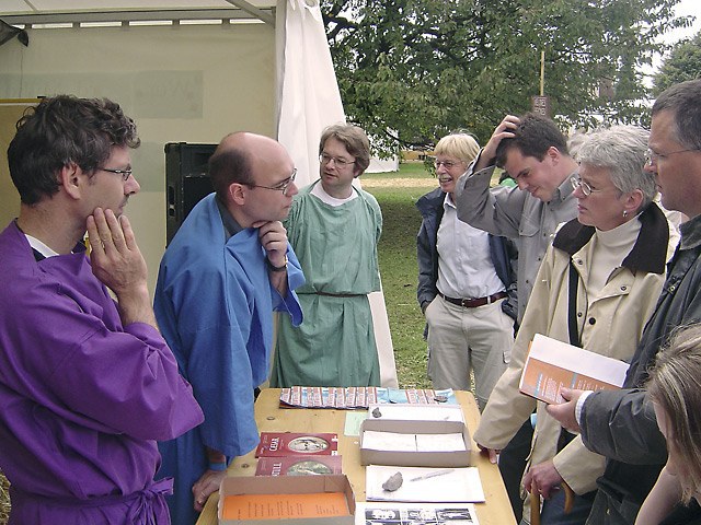 Das Unterrichtsfach Latein floriert in der Region Basel und bietet modernen Menschen eine unschätzbare Hilfe zur Erlangung sprachlicher und kultureller Kompetenz in der Gegenwart! Mit dieser Aussage waren Schülerinnen und Schüler des Gymnasiums am Münsterplatz unter der Leitung von Dr. Eugen Krieger und Walter Aerni am Römerfest 2006 (26./27. August) präsent. In einer vom Publikum rege besuchten Quiz-Show 'Wer wird Millionär?' à la Günter Jauch stellten die Schüler dem Publikum Fragen zu verschiedenen Sachgebieten der Antike. Jung und Alt meldeten sich mit grosser Begeisterung, um ihr Wissen zu testen. Der Anlass wurde von zahlreichen Lehrkräften des Kollegiums unterstützt, indem diese an den Informationstischen vor dem GM-Zelt dem Publikum für Fragen über den altsprachlichen Unterricht beratend zur Verfügung standen. Zudem bündelte das GM seine Ressourcen mit denjenigen des Gymnasiums Liestal, welches ebenfalls mit Altphilologen (Martin Müller, Franziska Meier) sowie Schülern die Quiz-Show mitgestalteten. Das Römerfest wurde trotz wechselhaftem Wetter von zehntausenden Interessierten der Region besucht.