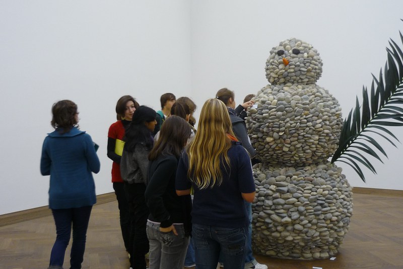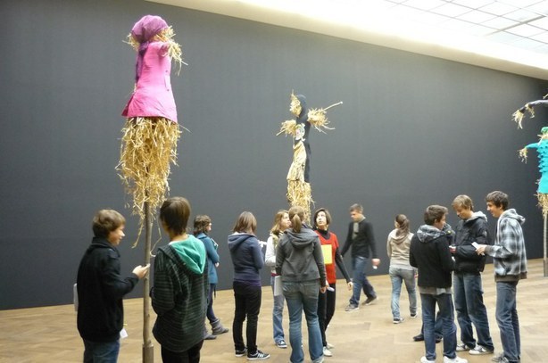 Entre espantapájaros, vestidos de Gucci y muñecos andantes, los alumnos descubrieron el mundo artístico de Daniel Knorr de una forma lúdica. Todo esto gracias a la interesante y divertida visita guiada preparada por la señora Vogel.