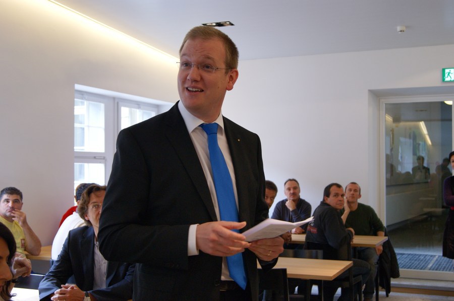 Zugegen waren alle fleissigen Arbeiter, welche mit grossem Einsatz in kürzester Zeit unsere Mensa komplett aufgebaut haben, Baudirektor Dr. H.P. Wessels als Vertreter des Regierungsrats, der Leiter Bildung des Erziehungsdepartements, H.G. Signer und viele weitere Personen, die zu dem gelungenen Ergebnis der GM-Mensa einen grossen Beitrag geleistet haben.