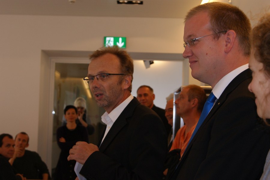Eingeleitet wurde die Einweihungsfeier durch eine freudige Begrüssungsansprache des Rektors Dr. E. Krieger, in welcher er der Leitung des Erziehungsdepartements, Regierungsrat Dr. Chr. Eymann und Hans Georg Signer sowie dem Baudepartement für die grosse Unterstützung und dem Architekten, Martin Jundt, und allen weiteren Fachpersonen für die gute Planung und Umsetzung dankte. Anschliessend fügten Herr Signer und Herr Dr. Wessels witzige Anekdoten hinzu.