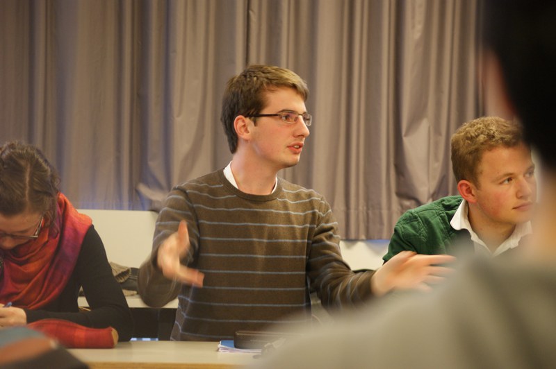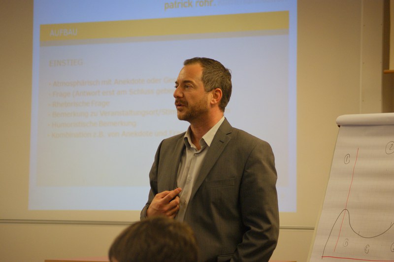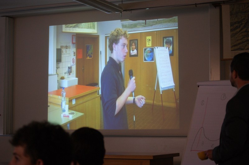 Im Rahmen des neuen Freiwahlfachs „Rhetorik“ des Gymnasiums am Münsterplatz und des Debattierclubs des Gymnasiums Münchenstein fand am Donnerstag, den 20. Mai, im GM ein Workshop zum richtigen Ausdruck und zur korrekten Haltung eines guten Redners und einer guten Debattiererin statt. Der bekannte ehemalige Arena-Moderator und heutige Kommunikations-Coach Patrick Rohr kam zu diesem Anlass für gut vier Stunden zur Schule auf Burg und verbesserte mit zahlreichen Übungen die rhetorischen Fähigkeiten der Teilnehmenden. So wurden fleissig Kurzreferate gehalten, Mini-Debatten durchgeführt und Statements abgegeben – vor laufender Kamera und im Scheinwerferlicht versteht sich. Wenn auch nicht alle Aussagen gleich eloquent formuliert und nicht alle Themen gleich stringent diskutiert wurden - speziell beim Thema „Wehrpflicht für Frauen“ wurden vor lauter Nervosität sehr amüsante Äusserungen zur Rollenverteilung zwischen Mann und Frau gemacht - so haben doch alle Teilnehmenden von diesem Nachmittag etwas mitnehmen und ihre rhetorischen Fähigkeiten verbessern können. Wir danken den unterrichtenden Lehrpersonen für diese interessante Gelegenheit und Patrick Rohr für seine wertvollen Tipps und Tricks. Vielleicht werden wir ja irgendwann einen seiner Kniffe bei einem politisch erfolgreichen „Ehemaligen“ in einer Rede vor dem Nationalrat wieder erkennen – wer weiss...