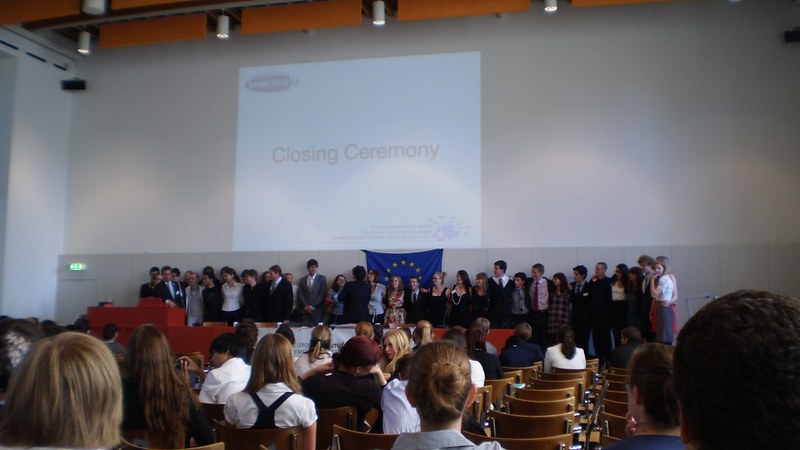 Ab Samstag stand die Politik im Mittelpunkt. Die Delegierten arbeiteten in zehn verschiedenen Komitees zusammen, um einzelne Themen nach den Interessengebieten Kultur und Erziehung, Menschenrechte, Finanzen und Wirtschaft, Frauenrechte und Gleichberechtigung, Industrie, Forschung und Energie individuell zu besprechen. Dabei waren wir mit über 150 Delegierten, zehn JournalistInnen und zehn Editors im Gymnasium am Münsterplatz zu Gast, das uns freundlicherweise seine Infrastruktur sowie Personal zur Verfügung stellte.