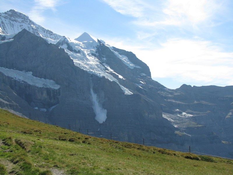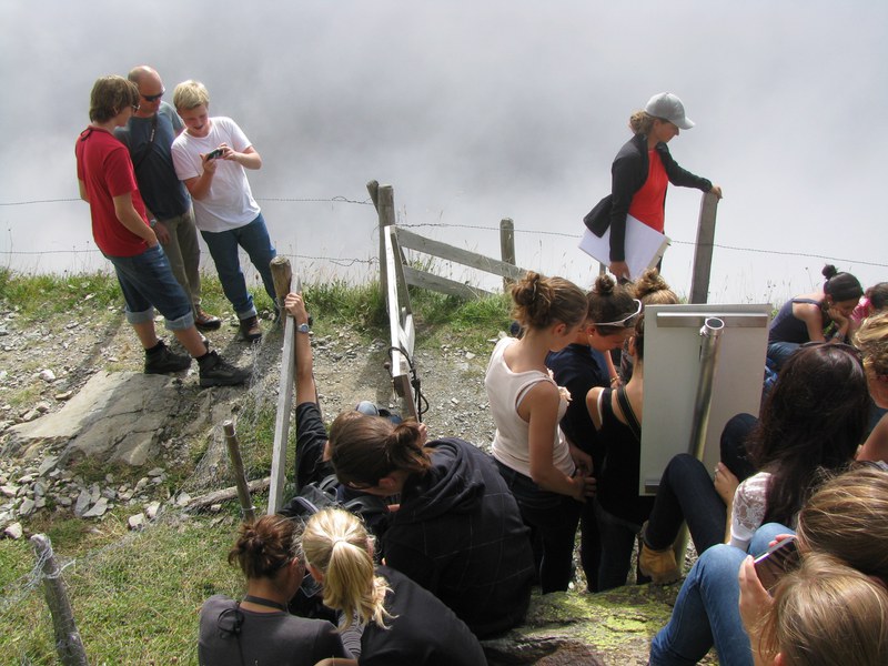 Die Reise begann um 08:40 Uhr am Bahnhof SBB. Wir waren ein bisschen müde, aber auch gespannt auf die Eiger-Climate-Exkursion. Die Zugfahrt von Basel nach Grindelwald war angenehm und ruhig. Als wir ankamen, wanderten wir quer durch Grindelwald zu einer Luftseilbahn. Dort wurden wir eingewiesen und begannen gleich mit einem der vielen extravaganten Spielchen. Wir sollten jeweils einen Scrabble-Buchstaben aus einem Eiswürfel auftauen und uns zu diesem Buchstaben ein Klimawort einfallen lassen. Nach diesem Spiel ging es dann mit der Bahn auf die Pfingstegg, wo wir eine thematisch geführte Wanderung mit kleinen Informationspunkten Richtung Bäregg machten. Die Zersiedelung von Grindelwald war sehr gut zu erkennen. Zudem lernten wir, was passiert, wenn Häuser am Rande stehen und der Gletscher abschmilzt. Die Antwort ist einfach: Die Moränen, auf denen die Häuser gebaut waren, “bröckelten“ langsam ab und das Haus wird langsam in die Tiefe gezogen. Leider gab es sehr starken Nebel, man sah eigentlich nur den Weg – die wunderschöne Landschaft des Unteren Grindelwaldgletschers war leider nicht sichtbar. Daher machten manche Bildersuch-Spiele keinen rechten Sinn, da man den Felssturz des Eigers beispielsweise nur auf dem Suchbild, nicht aber in der Natur sehen konnte. Trotzdem war es amüsant. Auf dem Weg Richtung Bäregg trafen wir einige Schafe an. Zwischenzeitlich löste sich der Nebel für einige Augenblicke, so dass wir eine schöne Aussicht auf die Stieregg, den Gletschersee und das Gebiet mit dem Unteren Grindelwaldgletscher geniessen konnten. Bevor wir ins Tal zurückkehrten, durften wir noch auf die Rodelbahn, was wirklich sehr lustig war. Danach machten wir uns auf den Weg ins Hotel auf der Kleinen Scheidegg.