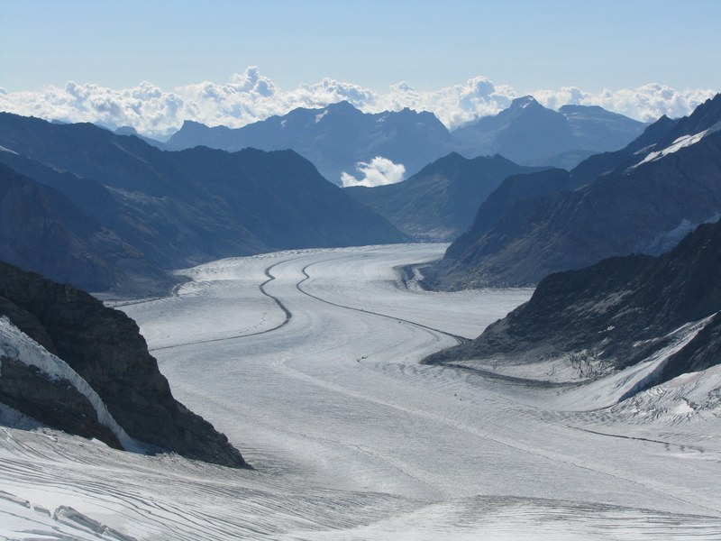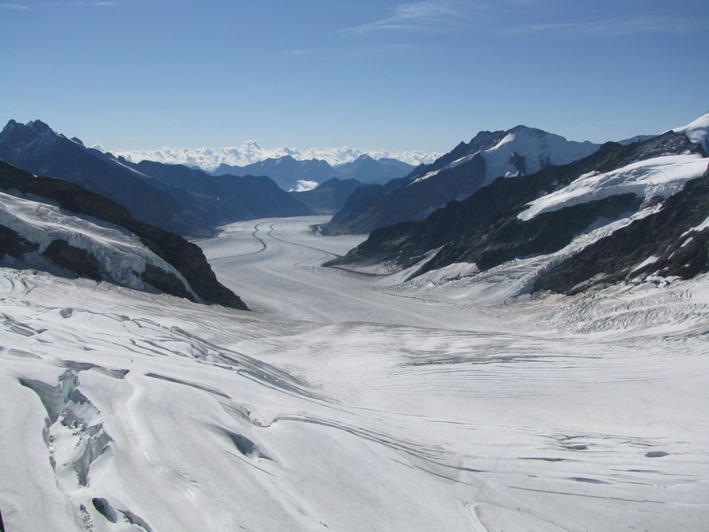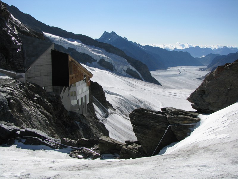 Nach einer knapp einstündigen Fahrt mit der Jungfraubahn kamen wir endlich oben auf dem Jungfraujoch an. Unterwegs gab es verschiedene Stationen, bei denen wir aussteigen und die Aussicht durch riesige Panoramafenster geniessen konnten. Die Station „Eismeer“ war besonders spannend, weil man eine riesige Eislandschaft beobachten und fotografieren konnte. Auf dem Jungfraujoch war es kalt und die Luft relativ dünn. Wir besuchten den Eispalast, in welchem es sehr rutschig war. Es gab viele lustige Skulpturen wie zum Beispiel eine eingefrorene Europapark-Maus, eine Eisbärenkolonie oder Figuren aus „Ice Age“. Danach besichtigten wir den Aletschgletscher, wo wir viele lehrreiche Dinge über Gletscher und Permafrost erfahren haben.