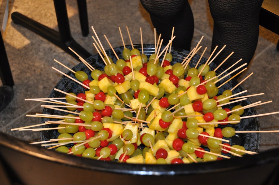 Kulinarisches Highlight: das Buffet. Dieses Jahr stand es ganz unter dem Motto Amerika, dementsprechend wurden viele verschiedene Köstlichkeiten wie Popcorn, Pizza, Früchtespiesse und Brownies aufgetischt. Die Krönung des Abends kulinarisch gesehen: zwei Tabletts voller Cupcakes, gebacken von Gioia Egloff aus der 3C.