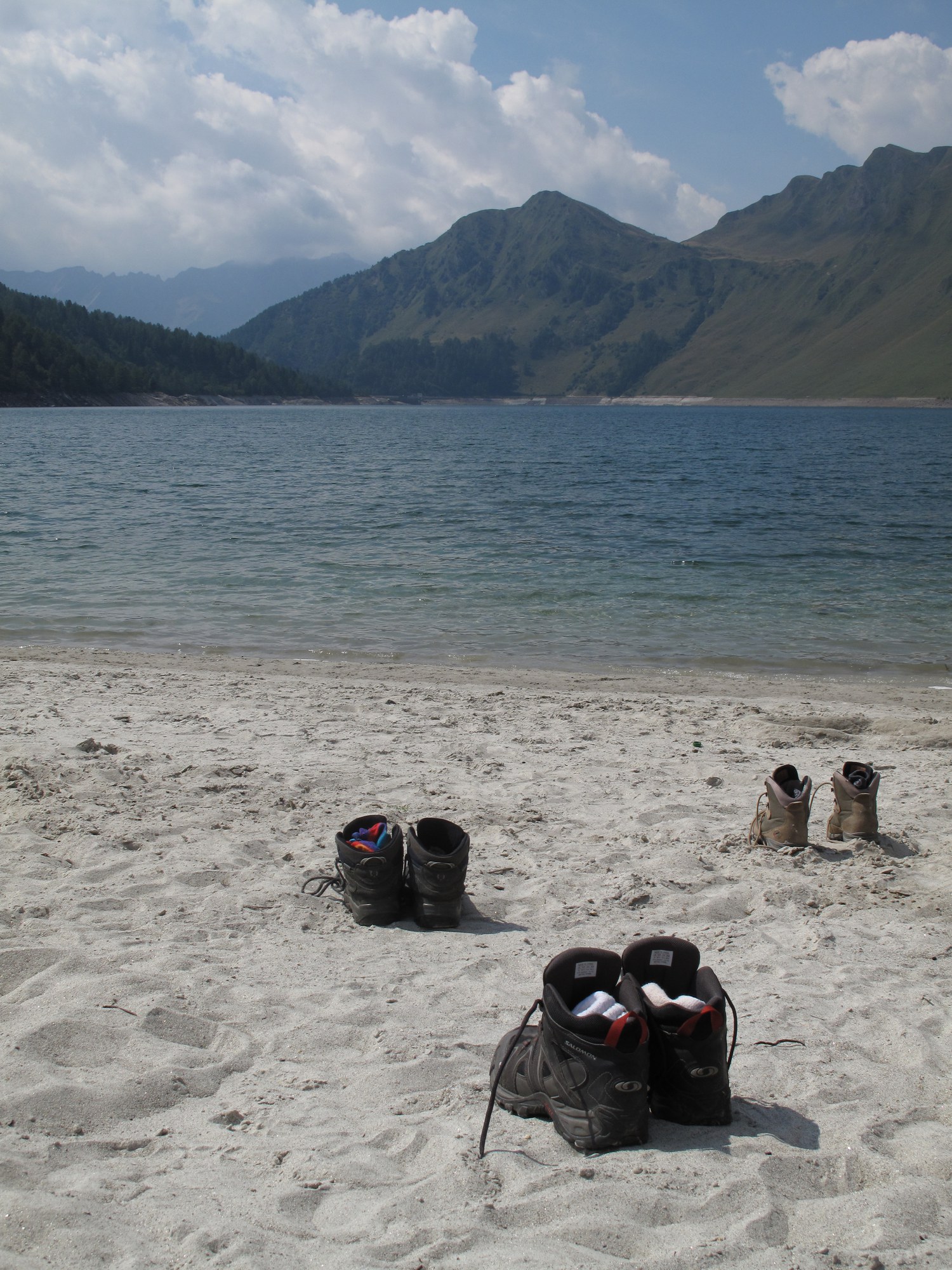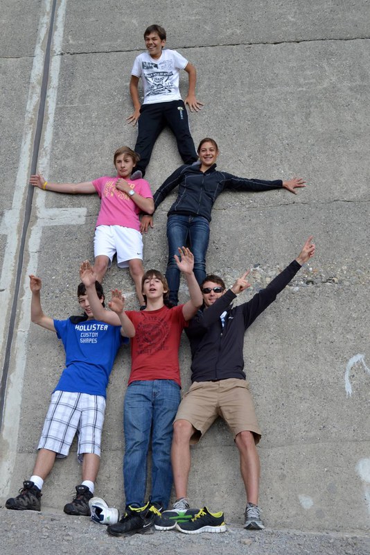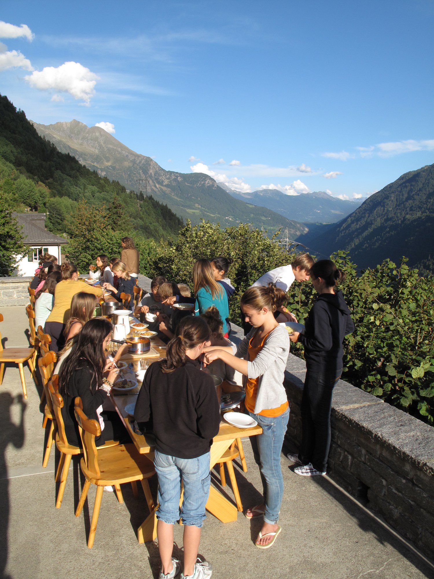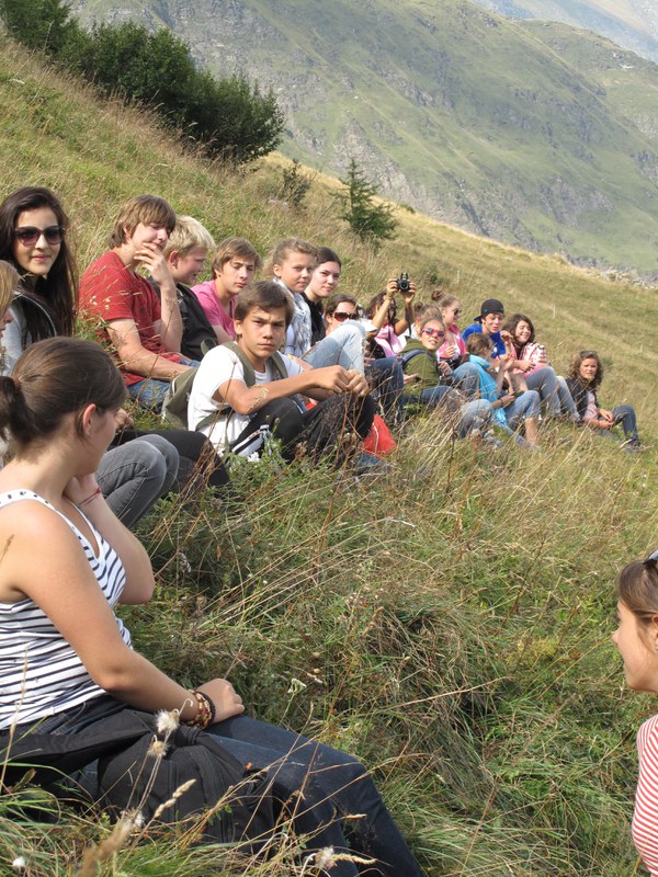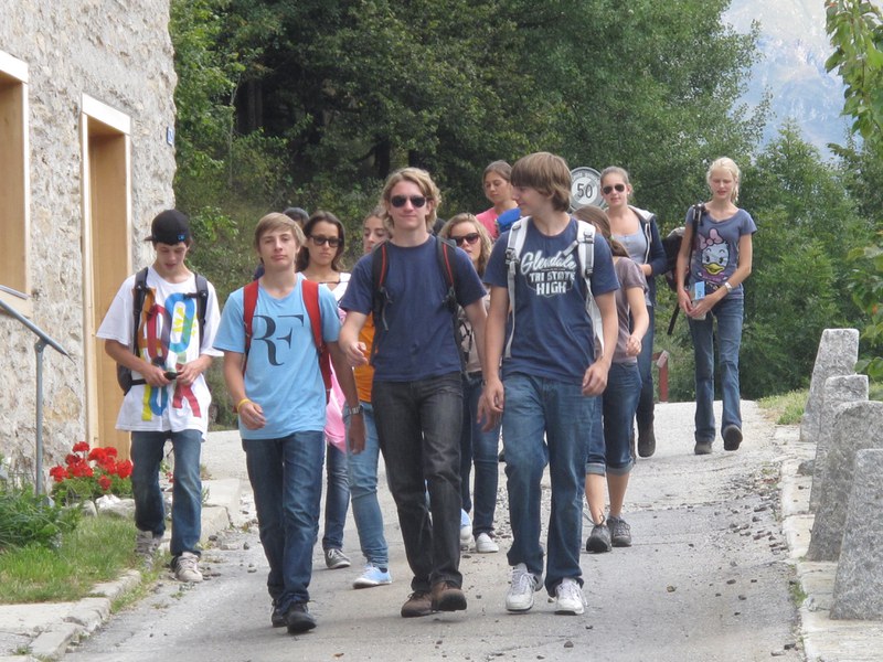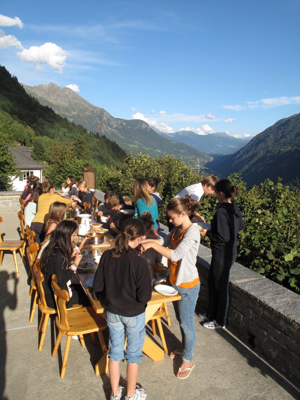 Wandertag. Wir mussten zum Stausee etwa 1 ½ Stunden hoch laufen. Das war anstrengend, doch die Aussicht war es Wert. Beim Reservoir angekommen machten wir eine kurze Pause, während Herr Mettler und die Jungs versuchten eine Menschen-Pyramide an der Wand der Staumauer zu machen. Nach der Pause liefen wir um den Stausee bis wir zu einem Wasserfall kamen. Neben diesem Wasserfall gab es einen kleinen Strand, dort machten wir unsere Mittagspause. Herr Mettler, Frau Boser, Lukas, Basil und Anton gingen baden, doch nicht für lange, da das Wasser sehr kalt war. Wir machten ein Feuer und brätelten Würste. Nach der Mittagspause setzten wir unsere Wanderung fort. Nochmals ging es auf einem Wanderweg bergaufwärts. Doch plötzlich gab es keinen Weg mehr und wir saßen auf einer steilen Wiese und Herr Mettler suchte nach einem Weg. Der Weg führte uns 3 Stunden lang auf einem schmalen Weg bis zum Lagerhaus. Das war ein Abenteuer! Als wir ankamen hatten wir sehr Hunger. Da kam der Nudel-Poulet-Gratin gerade rechtzeitig. Wir gingen zufrieden und müde ins Bett.