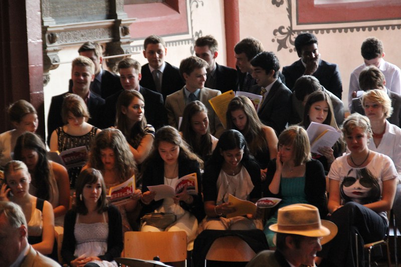 Am Freitag 1. Juli 2011 fand in der Martinskirche die traditionelle Maturfeier des Gymnasiums am Münsterplatz statt. Nach einer Begrüssungsansprache durch den Rektor, Herrn Dr. Eugen Krieger, hielt Herr Professor Blome, Direktor des Antikenmuseums Basel, eine ansprechende Festrede, in welcher er auf das GM-Signet, die attische Tetradrachme mit Athena und den Wert altsprachlicher Bildung in der heutigen Zeit einging. 66 Maturanden erhielten anschliessend ihr Maturzeugnis. Umrahmt wurde die schöne Feier von musikalischen Beiträgen der GM-Jazzband und des LaP-Projekts der 2. Klassen.
