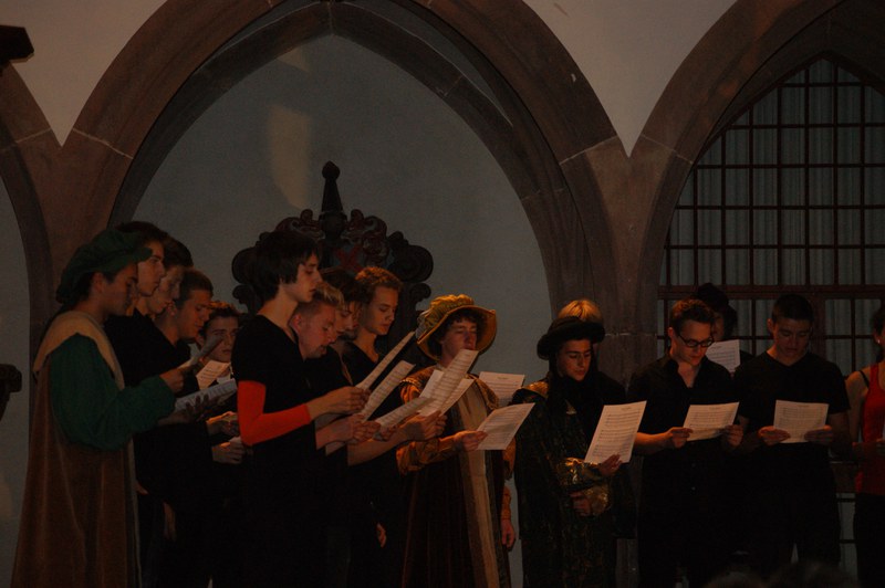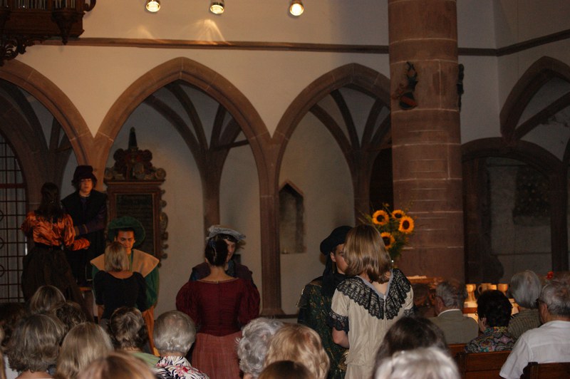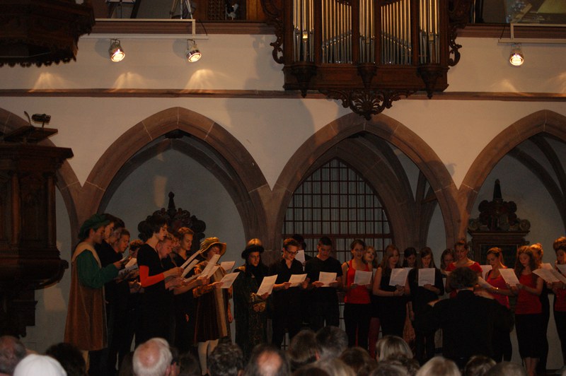 Eine Hofgesellschaft lud zur Feier ein. Es wurde getanzt, gesungen und musiziert. Die Hofgesellschaft wurde auf ihrer Reise in die Gegenwart begleitet - die Konzertbesucherinnen und -besucher erlebten in wunderschöner Ambiance sowohl feine als auch kraftvolle Klänge sowie überraschende und unklerikale Wirkungen von Orgelmusik. Einige Impressionen finden Sie in den unten stehenden Bildern. Den leitenden Lehrpersonen Chr. Herrmann und S. Wydler sowie den Schülerinnen und Schülern sei für ihren grossen Einsatz und die gute Qualität der Aufführung gedankt.