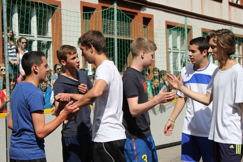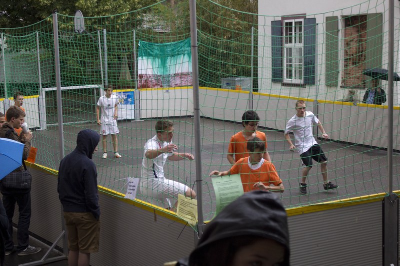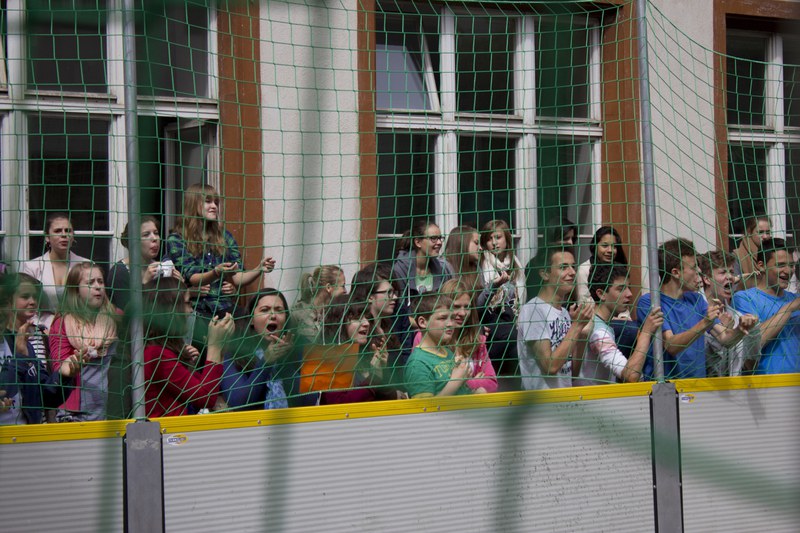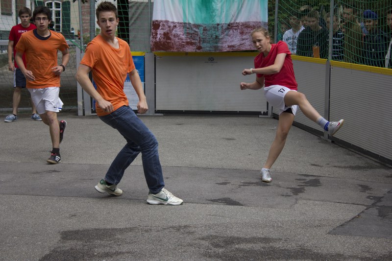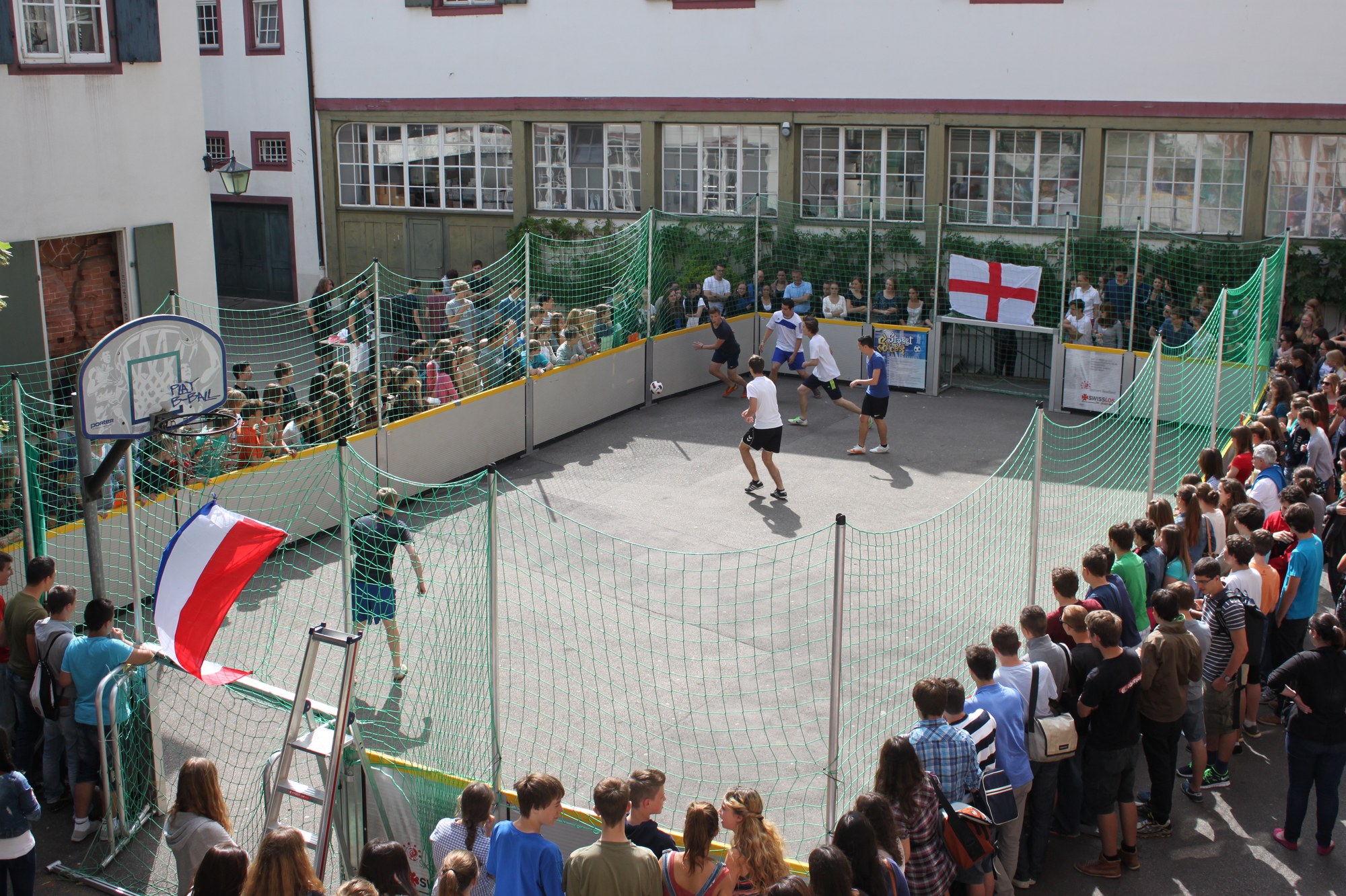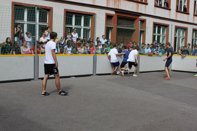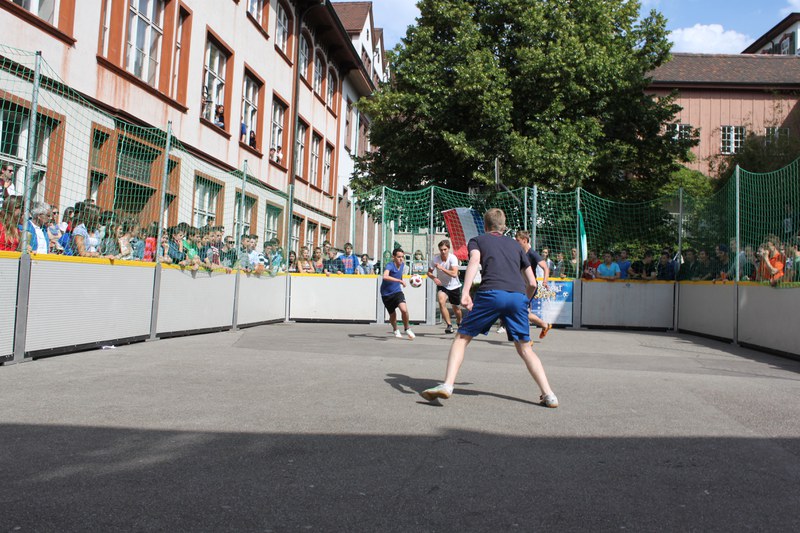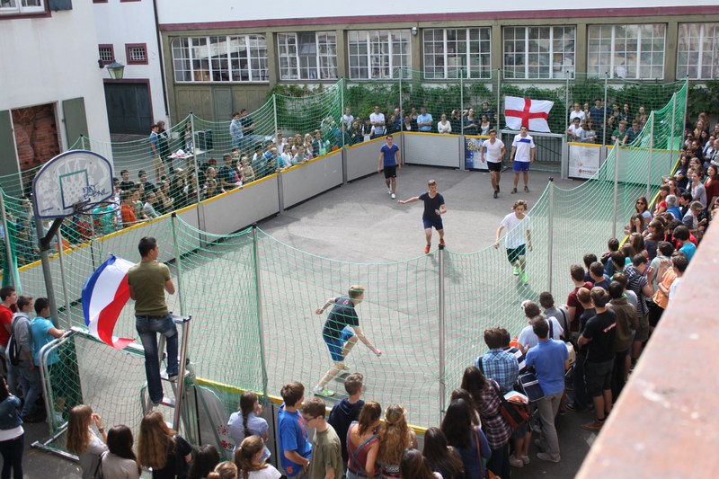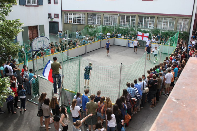 Wenn man am Montag, dem 4. Juni 2012 am frühen Nachmittag diversen freiwilligen Helfern beim Aufbau der gemieteten Street Soccer Anlage zusah, ahnte man noch nicht wirklich, was für eine Attraktion die EM am GM werden würde. Die Idee der schulhaus-eigenen Fussballmeisterschaft wurde schon im Jahre 2010 auf Grunde der Weltmeister-schaft in Südafrika zum ersten Mal umgesetzt, die EM am GM war also der zweite erfolgreiche Street Soccer Event an unserer Schule und brachte zum zweiten Mal Abwechslung, Sportfreude und Fussballfieber in den Pausenhof. Am Dienstag dann ein Déja-Vu der Euphorie für die Oberstufenschüler und eine positive Begegnung mit einem selten so stark spürbaren Zusammenhalt für diejenigen, die so ein Turnier zum ersten Mal mitbekamen.