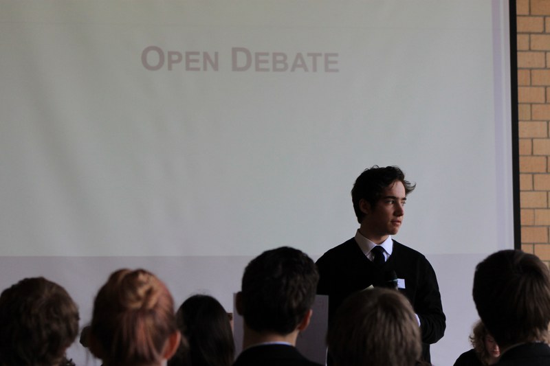 Nach diesem unterhaltsamen Abschnitt folgte die Hauptprozedur: Zuerst wurde das Diskussionsthema der dazugehörigen Gruppe vorgestellt, welches mit einer Defence Speech verteidigt und durch eine "Attack Speech angegriffen wurde. Danach kam es zur Debatte – nur auf Englisch oder Französisch. Hier kamen dann alle zum Zug: Jeder einzelne konnte seine Meinung zum jeweiligen Thema äussern. Damit nicht alle zur selben Zeit redeten, wurde man einzeln von der Jury aufgerufen und erhielt das Mikrofon. Am Schluss wurde in einer Abstimmung für oder gegen das Thema abgestimmt.