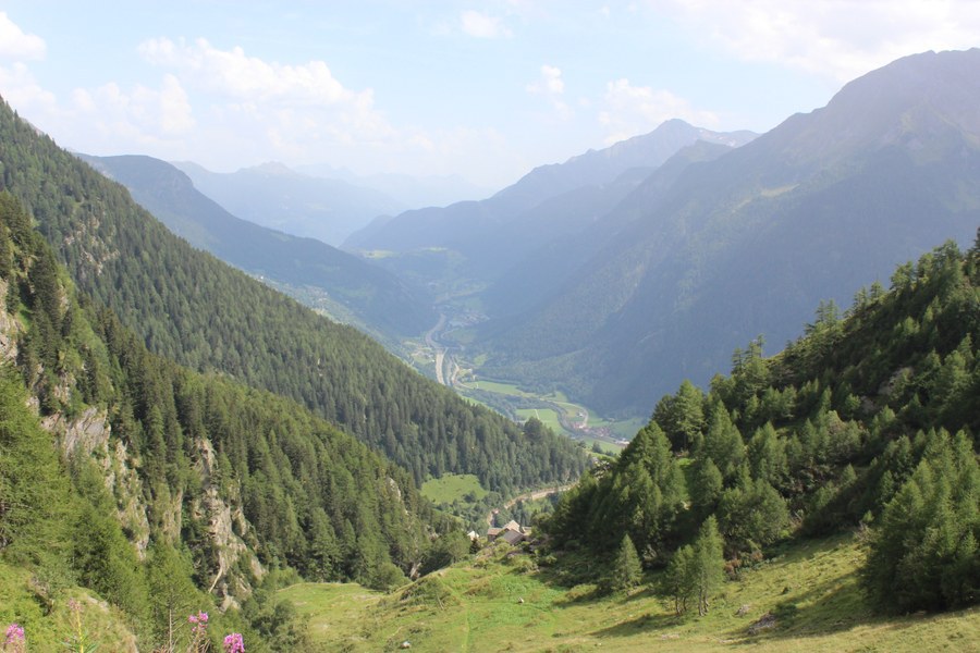 Montag war unser erster Tag in Brugnasco. Nach einer dreistündigen Zugfahrt waren wir in Airolo angekommen. Unsere grossen Koffer gaben wir Frau Haist mit ins Auto und wanderten los. Erst liefen wir nur einer Strasse entlang, was sehr angenehm war im Vergleich zu dem was nachher kam. Anstatt auf der Strasse weiter zu gehen, nahmen wir einen Wanderweg durch Gestrüpp. Der Weg wurde sehr anstrengend, da es sehr schmal und teilweise steil war. Da wir alle mit einer „kleinen Wanderung“ gerechnet hatten, trugen die meisten Turnschuhe, bestenfalls Trekkingschuhe, was das Ganze noch mehr erschwerte. Nach einem letzten anstrengenden Abschnitt waren wir endlich angekommen.