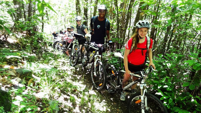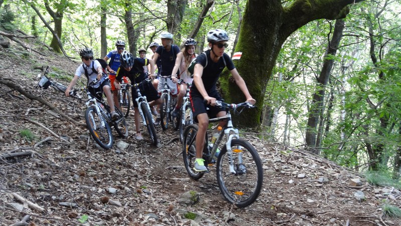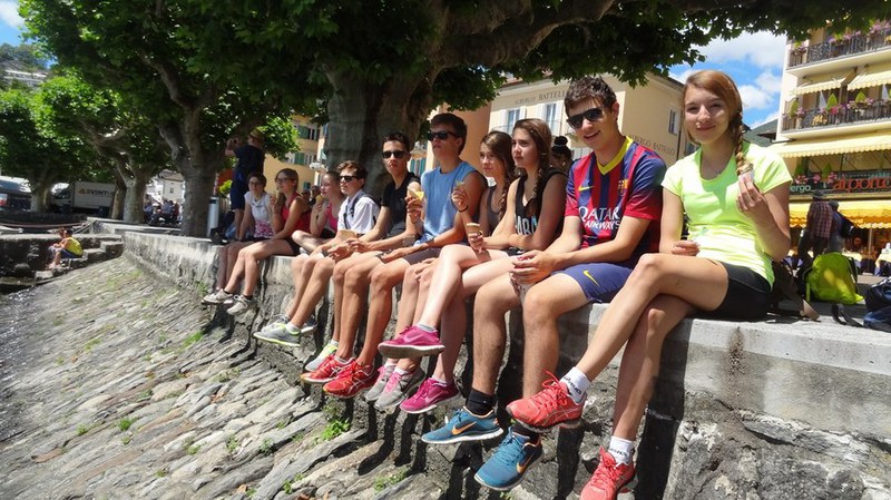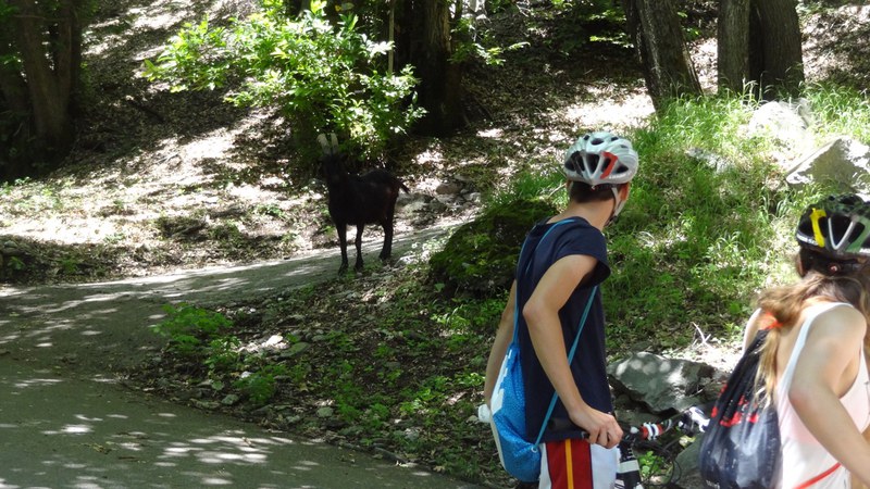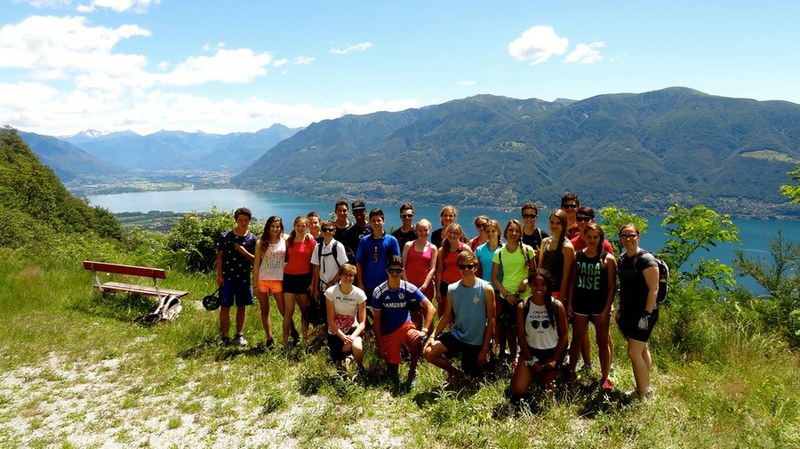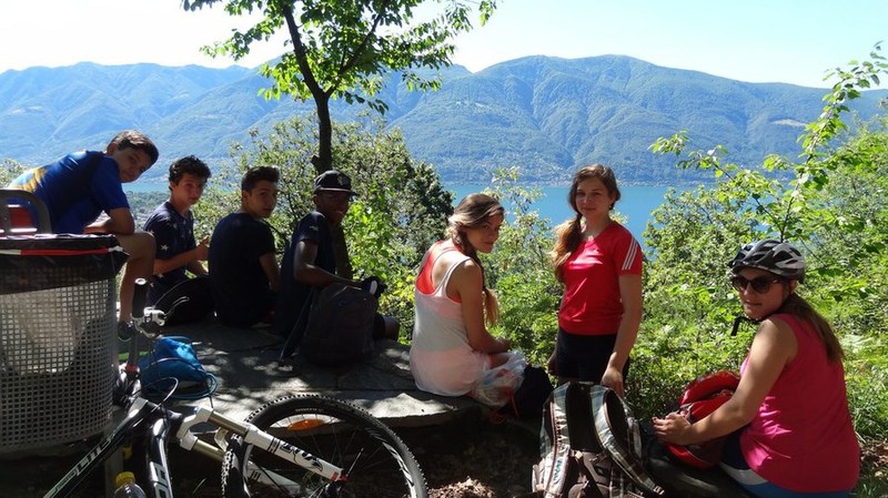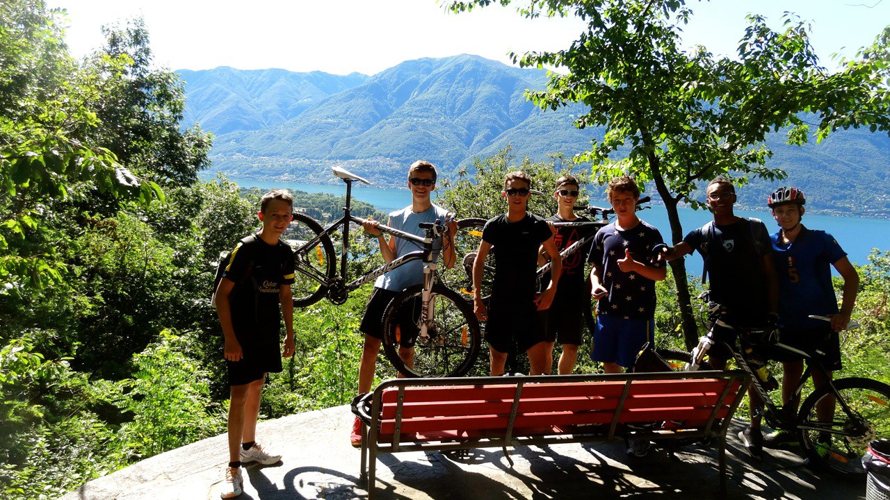 Am Montag erwischten wir einen perfekten Tag für unsere Mountainbike-Tour. Der Aufstieg war sehr steil - einige mussten das Bike zeitweise schieben –, entlöhnte uns aber mit einer tollen Aussicht auf den Lago Maggiore. Als es wieder bergab ging, liess sich ein Grossteil der Schülerinnen und Schüler auf ein Abenteuer à la Downhill ein. Über Schutt, Geröll und Baumwurzeln ging es im tiefen Wald auf einem Wanderweg einen kurzen Abschnitt steil bergab. Verfolgt wurden wir dabei von Damians Freund aus dem Bündnerland, dem Steinbock. Zurück in Tenero liessen wir den Abend im kalten Nass und mit einem Zimmer-Volleyballturnier ausklingen.