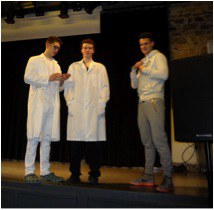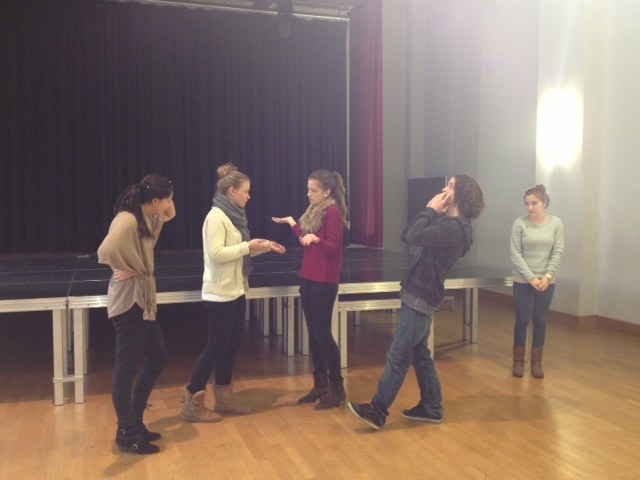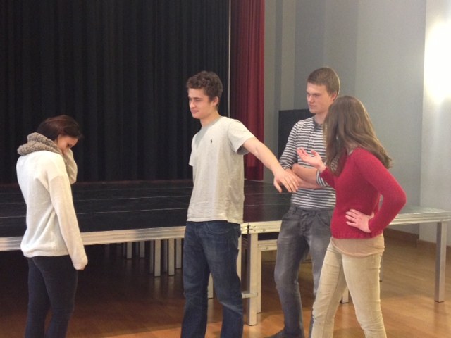 Montag und Dienstag vergingen mit Proben und Werbung in den Klassen sehr schnell. Am Dienstagabend war dann bereits die Premiere. Wir hatten ein eher kleines aber sehr interessiertes und unterstützendes Publikum und die Aufführung war für uns alle eine sehr tolle Erfahrung. Am Mittwoch und Donnerstag war dann die Aula sehr gut gefüllt und auch diese Aufführungen machten uns grossen Spass.
