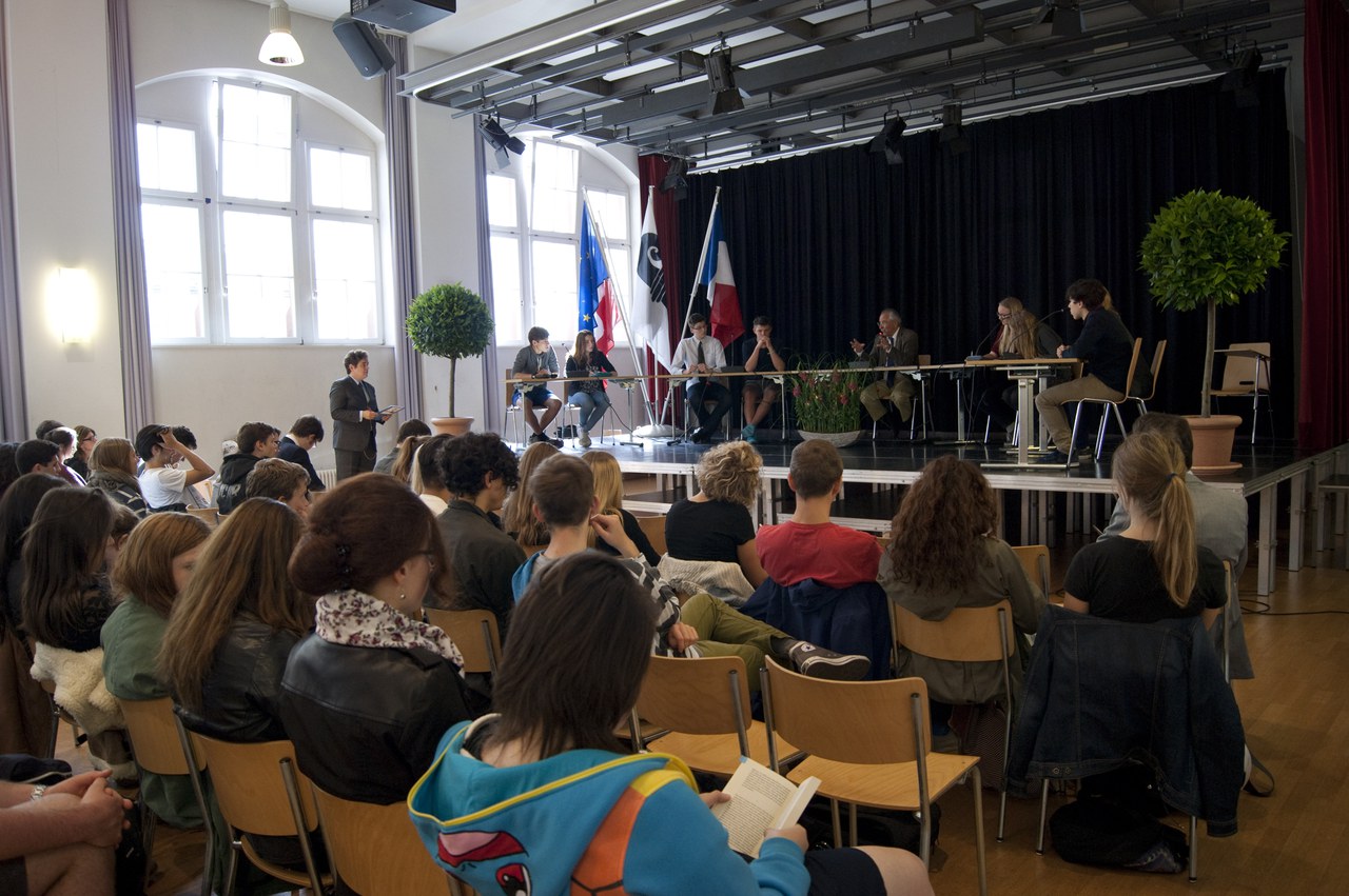 Herr Renaud ging sehr einfühlsam auf die Schüler ein, es gelang ihm, seine überragenden Kenntnisse der Materie mit grossem didaktischem Geschick und aus einer sehr (selbst-)kritischen Warte an eine begeisterte Schülerschaft heranzubringen. Der Botschafter beglückwünschte das GM für die vorzüglichen Französischkenntnisse und das hohe Diskussionsniveau der beteiligten Klassen.