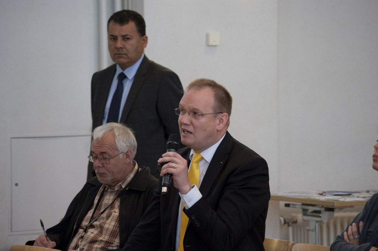 Herr Roudaut machte einen Aufruf, die grundlegenden Gedanken der Verträge von Rom – Solidarität, Kooperation, Kohärenz und Identifikation wieder aufzunehmen. Gerade im Verhältnis zur Schweiz seien die bilateralen Verträge ein grosses Entgegenkommen seitens der EU, das der Union einen hohen bürokratischen Aufwand abverlange, dafür aber eine gewisse Gegenseitigkeit benötige. Die Europäische Union verstehe sich als Nullsummenspiel, bei dem niemand gewinne, aber letztlich doch alle profitieren könnten.