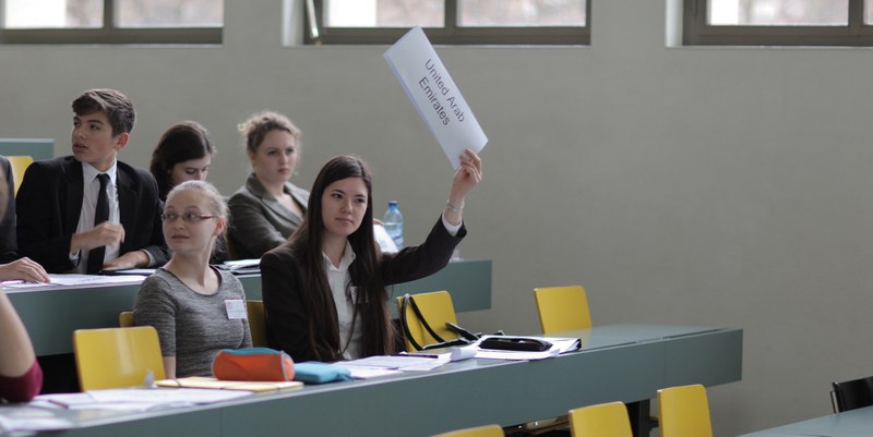 Model United Nations, also known as MUN, is an educational simulation of academic competition in which students learn about diplomacy, international relations, and the workings of the United Nations by representing a nation state.