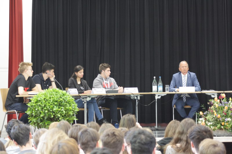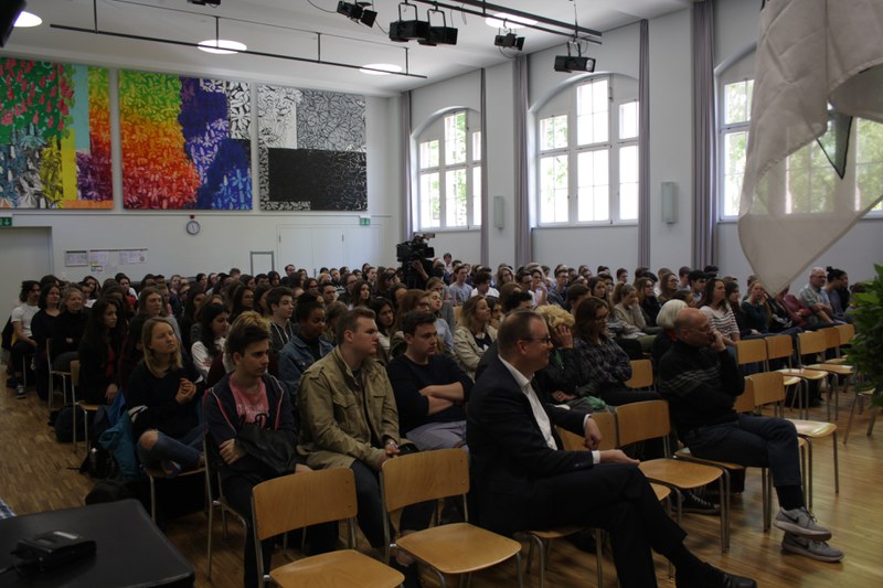 Brisante Themen wie die Flüchtlingskrise, der Terrorismus, der aufkommende Nationalismus in verschiedenen Staaten standen auf der Agenda und belebten das Gespräch, das auf einem hohen Niveau geführt wurde. Mit viel Humor gesprenkelt hielt der "eingefleischte Europäer" Dr. Lampe ein Plädoyer für die EU, die Schülerinnen und Schüler begegneten dem Botschafter mit pointierten, kritischen Fragen.