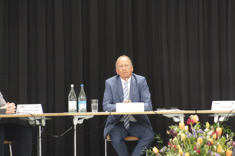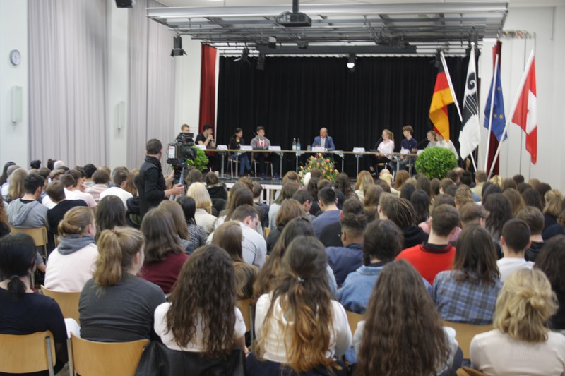 Anlässlich des Schulprojekts der Delegation der Europäischen Union für die Schweiz und das Fürstentum Liechtenstein besuchte am Montag, 24. April 2017 der Botschafter der Bundesrepublik Deutschland, Dr. Otto Lampe, das Gymnasium am Münsterplatz. Nachdem die Besuche des britischen und des französischen Botschafters in den beiden vergangenen Jahren sich als grosse Erfolge erwiesen hatten, war auch das diesjährige Treffen zwischen einem europäischen Spitzendiplomaten und der Schülerschaft des GM hoch erfreulich.