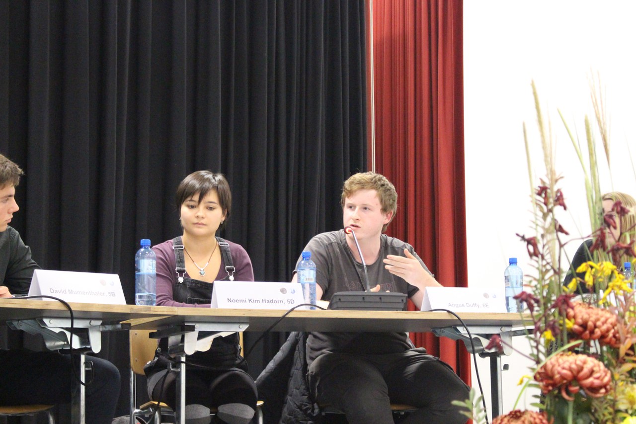 Am Donnerstag, 14. November fand in der Aula des GM eine vom Rektorat organisierte Podiumsdiskussion zum Thema Klimawandel statt, an welche fünf namhafte Vertreter aus Forschung, Wirtschaft und Politik geladen waren. Diese teilten sich das Podium mit fünf GM-Schülerinnen und -Schülern. Die 200 Schülerinnen und Schüler der 5. Klassen, welche das Publikum bildeten, nahmen ebenfalls aktiv an der Diskussion teil.