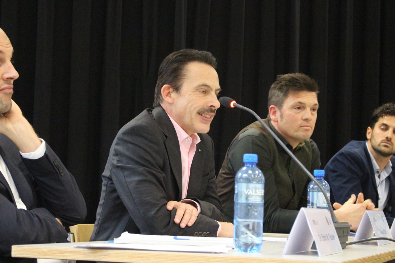 Herr Jans postulierte auch, dass es wichtig sei, international zu denken. Bis zum Jahr 2050 würden 90 Billionen US$ gebraucht, um die Klimaziele weltweit zu erreichen und die Banken als grösste Finanzverwalter der Welt müssten hier ihre Verantwortung stärker übernehmen und diese Vermögen in klimaschützende Massnahmen setzen. Ebenso plädierte er dafür, dass der Staat da eingreifen und auch Verbote aussprechen müsse. Dieses Votum stiess auf Kritik seitens der Vertreter der Wirtschaft. Herr Zepf kommentierte, die Umweltziele würden zwar politisch gesetzt, umgesetzt werden müssten sie dann jedoch von „den Bösen“, das heisst von Industrie und Banken. Seiner Meinung nach könne dieses Problem aber nur im Dialog angegangen werden. An erster Stelle stehen für ihn einhaltbare Rahmenbedingungen, an zweiter Stelle sei es wichtig, Anreize zu schaffen, damit diese Rahmenbedingungen eingehalten würden und erst in dritter Instanz solle man Verbote aussprechen.