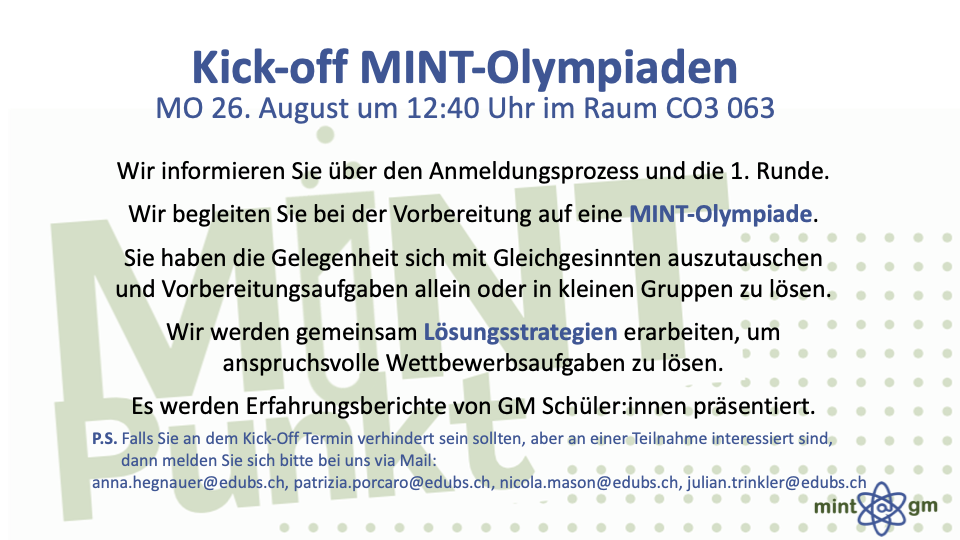 Möchtest Du an einer Wissensschafts-Olympiade teilnehmen?