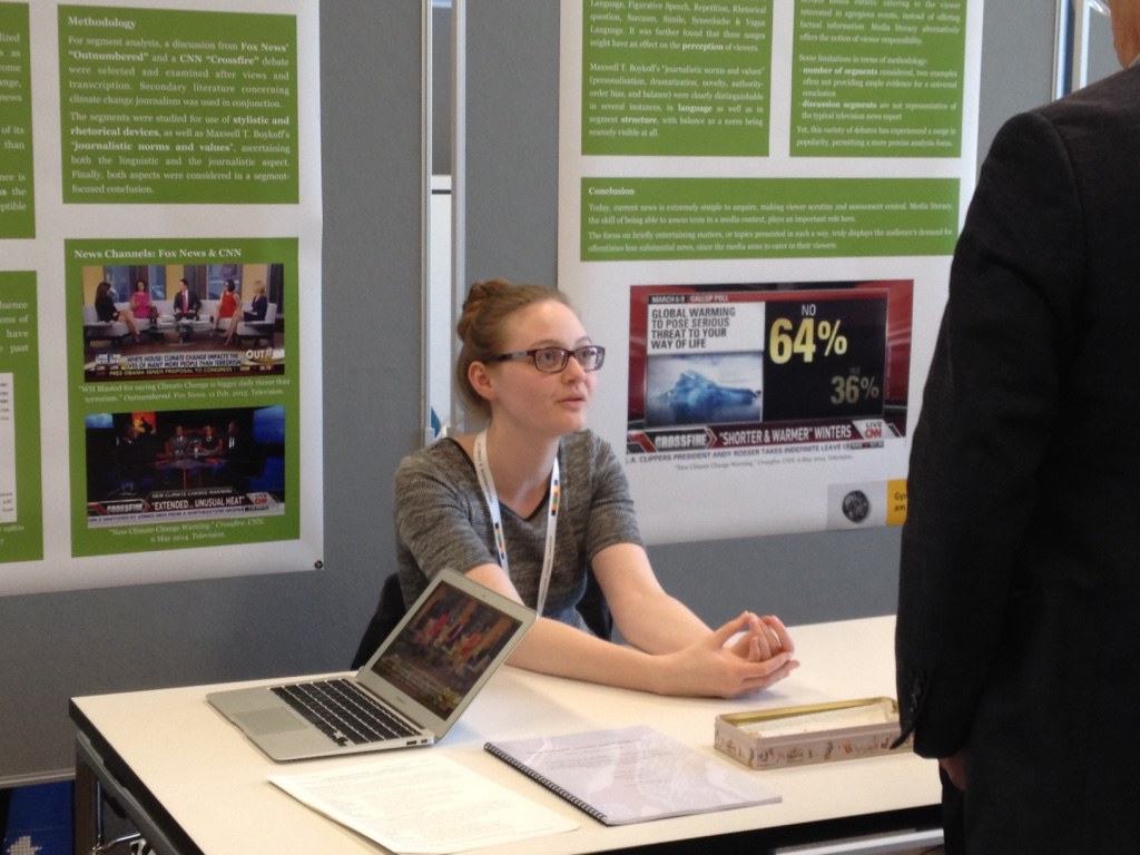 Brugg-Windisch durchgeführt wurde. Nebst all den hochinteressierten und motivierten Jugendlichen, den engagierten Expertinnen und Experten und einem äusserst effizienten Team von Helferinnen und Helfern konnten unsere beiden Teilnehmerinnen, Julia Heuss und Victoria Landau, auch mit kritischen Besucherinnen und Besucher kennen lernen und sich mit ihnen angeregt unterhalten. Victoria Landau reichte ihren im Rahmen des IB Diploma Programmes verfassten Extended Essay mit dem Titel „Climate Change & the Media – Feeding the Public“ und erhielt von der namhaft besetzten Jury die Auszeichnung „gut“. Die Arbeit von Julia Heuss mit dem Titel „Kriege spielen sich langsam ab“ – Der Erste Weltkrieg in Strassburg anhand eines Briefwechsels 1913-1919“ wurde mit dem Prädikat "sehr gut" und dem Sonderpreis Academia Engelberg ausgezeichnet.