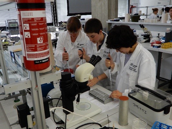Dabei lernten wir zunächst einmal, wie man im Labor arbeiten muss, wie man pipettiert und wie man Proben richtig beschriftet.