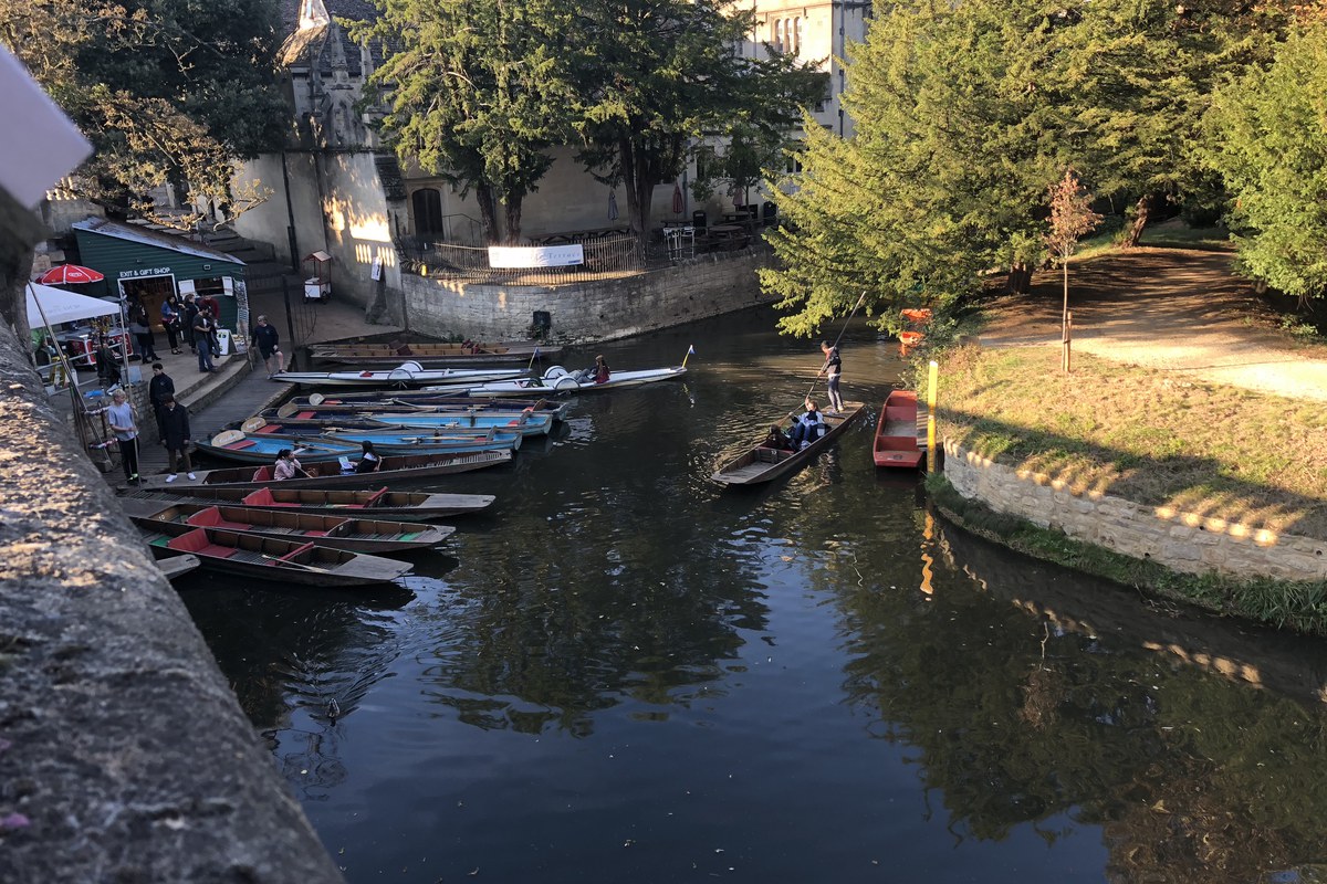 Rewind … the highlight was of course the immense Dining Hall, where scenes of the Harry Potter movies were filmed. From there we walked straight into another film set, but this time by accident, as the detective series Endeavour was being filmed around us in the street. It was now time to meet the final famous character of the day at Magdalen College, where Isabella and Ella presented the eventful life and works of Oscar Wilde to us. While some explored this beautiful building and its English gardens further (making friends with remarkably friendly deer in the park), others stepped across Magdalen Bridge to go punting on the boats in leisurely Oxford style.