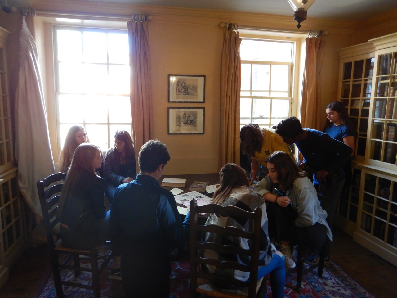 The Day began with a visit to Westminster Abbey, where we passed the resting places of some of the most famous British scientists, poets, politicians and monarchs. Jennifer and Antonio`s presentation about the Abbey and Elisabeth I had already highlighted some of the most important history of this ancient place, but we were surprised to find more familiar names like those of Stephen Hawkins and Charles Dickens inside, too. From Westminster, we hopped on and off our tour bus to see places like 10 Downing Street, Picadilly Circus and Buckingham Palace and then finally (through ridiculous traffic, of course) found our way back together at Dr. Samuel Johnson`s House. After our workshop about his English dictionary, some couldn`t resist one final costume session. In the last presentation of the trip, Aimee and Annika solved some of Sherlock Holmes` mysteries for us before our final event of the day took us to the Globe to see Shakespeare`s A Winter`s Tale. As actors and audience broke into bizzare song and dance at the end of the play ... we were left wondering whether Shakespeare really was as high-brow as we had expected!