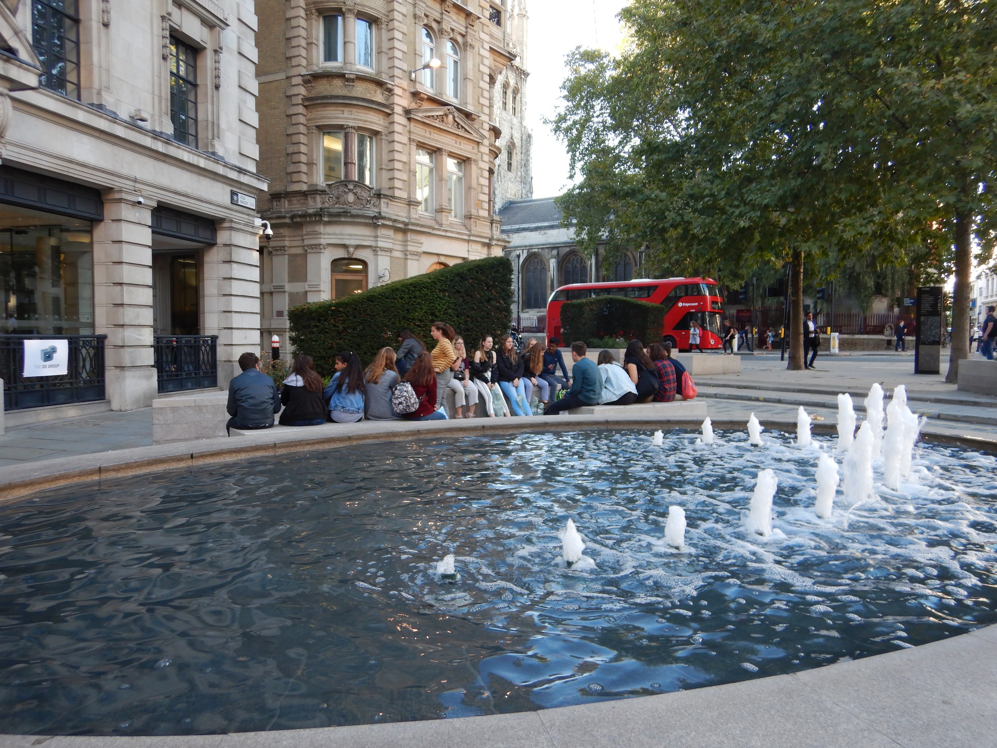 We all met at 10 o’clock in the morning at Basel-Mulhouse Airport and after a smooth flight, got our first aerial glimpse of London sprawling out from the winding Thames river. The ground view of London, however, would have to wait. First on the itinerary was a bus ride to rainy Avebury, where we could visit the ancient Stone Circle and had a tour inside the Medieval Manor: a 14th-century moated house in Kent. This is where Oscar held his presentation about King Henry VIII and the rest of us were able to watch comfortably from a medieval four-poster bed before moving through the different history-themed rooms of the house. After rainy encounters with sheep amongst the ancient stone circles, we were ready to dry off in the coach again and get to our first accommodation in the small city Bath. Braving the rain and unexpected cold, we set out again on our first tour, visiting the homes of the famous English novelist, Jane Austen, about whom Paula and Francesca held their presentation. We even met quite a few “Jane Austens” in the street because it was the Jane Austen Festival, where people dress up and attend balls in traditional fashion to celebrate the author`s life and works. We, however, were now ready for warm comfort food and went to Domino’s pizza to indulge ourselves.