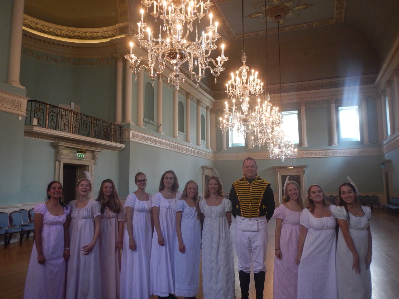 ‪In the afternoon, we visited the famous Assembly Rooms where we heard two insightful presentations about Mary Wollstonecraft as well as the history of fashion as a mirror of society. Following these, came a true highlight of the trip: the Regency dance class.