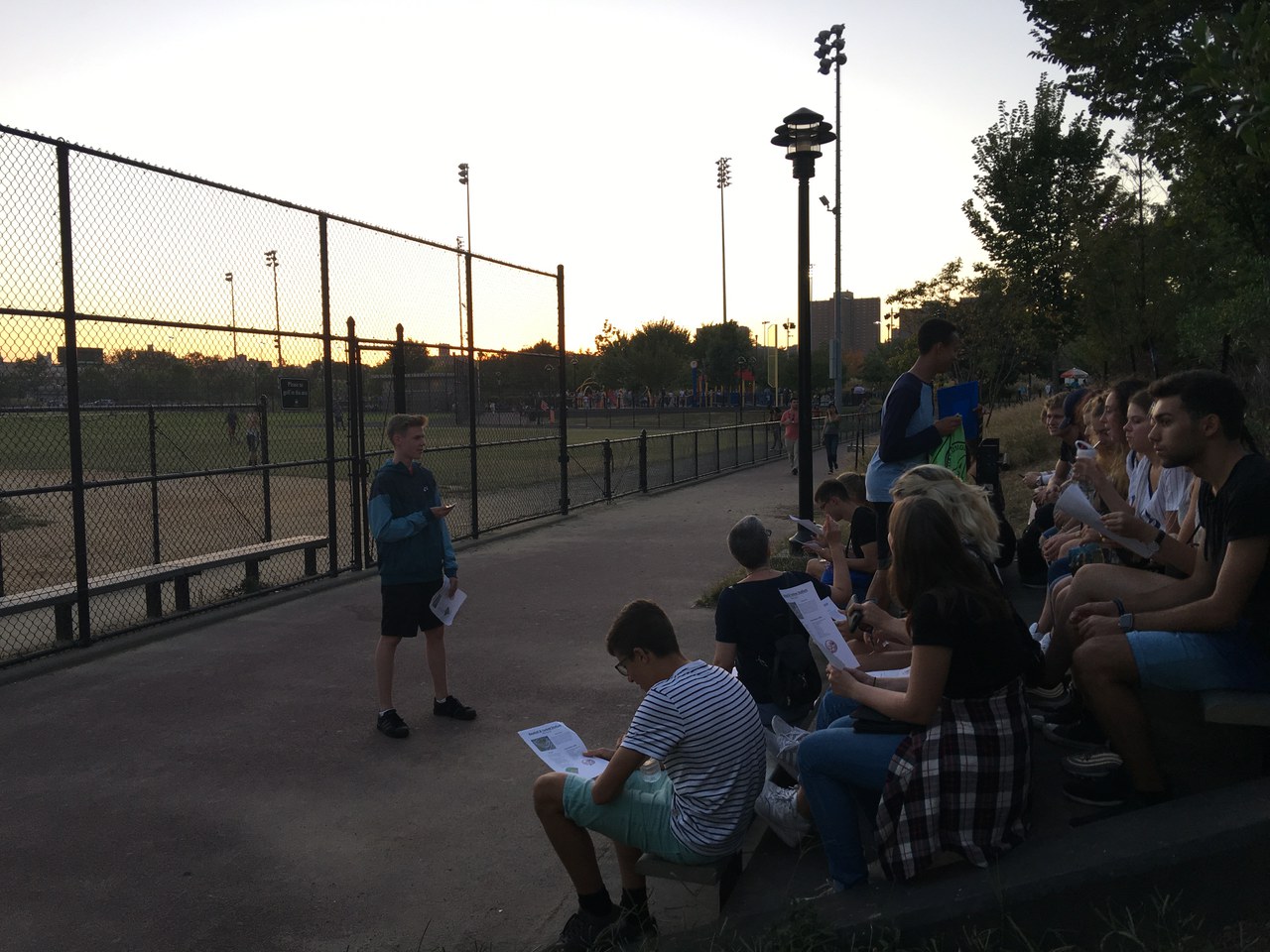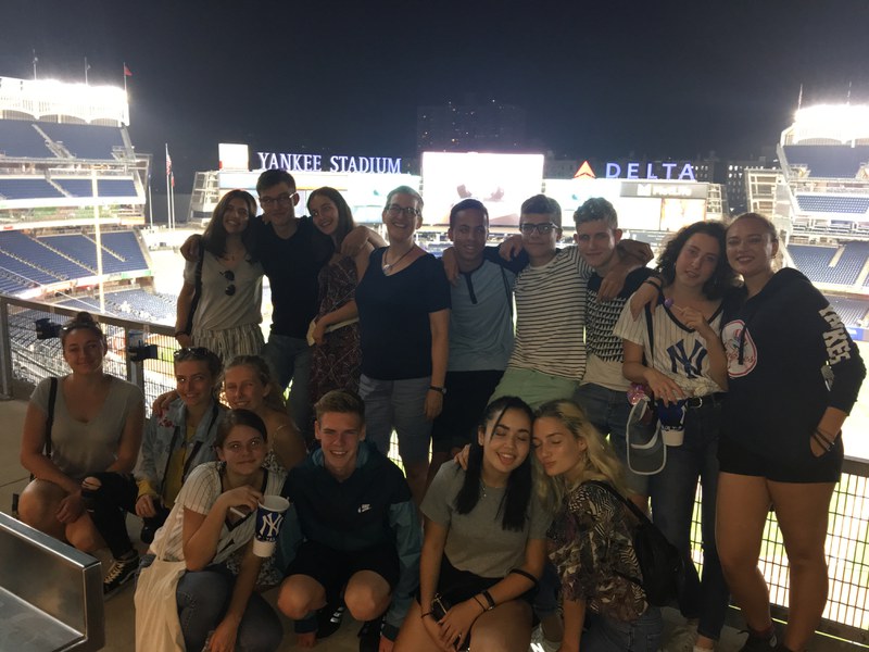 First thing on our list on day five: Greenwich Village. We sat down in the middle of Washington Square Park, and Katja and Eliana gave us a presentation about the cultural background of Greenwich Village, and how Emma Goldman had such a big influence on it. Katja and Eliana both brought us around Greenwich Village to historical sites, streets and houses. The tour done, we all went to New York University to receive a presentation from one of the students: she explained to us all of NYU’s facilities, including its vast library, its computer science technologies and its numerous sports teams, which, this last one, came in contrast with our European universities. The afternoon, once more, was consecrated to leisure time. A few hours later though, we reunited to head to a baseball game in the Yankees stadium in the Bronx, but not before attending a presentation by Nate just as the sun was starting to go down. We then sat down at our seats in the stadium and enjoyed a few hours of looking down on the game from our high-placed spot and of eating the typical baseball game food: hot dogs and fries.