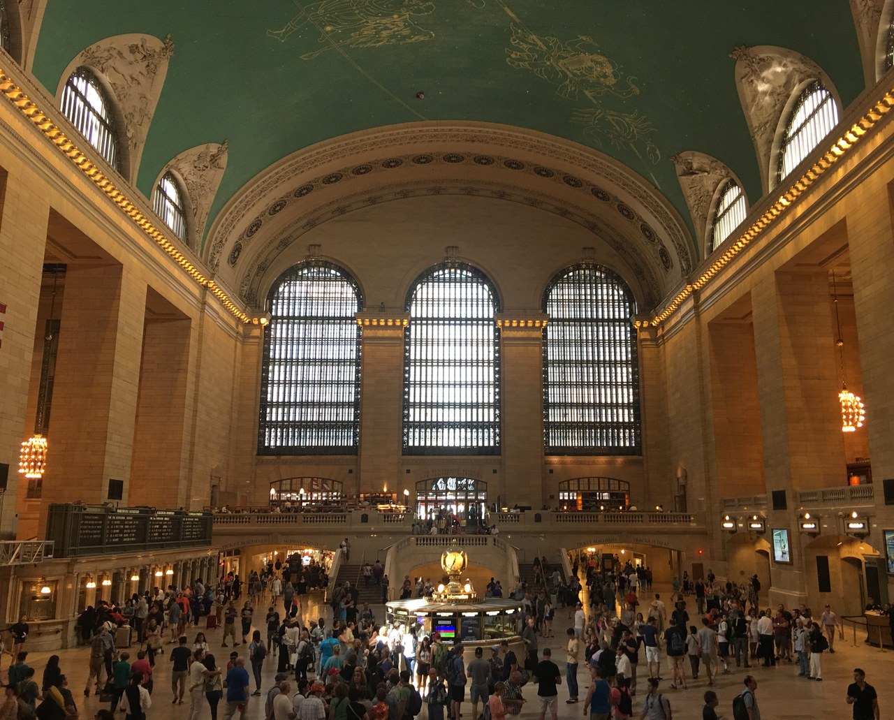 The next morning, refreshed and well-rested, the English class sat down in the lobby and Mrs Pieck gave us instructions on the day’s activities. First up: a safety procedures workshop by the NYPD. After the three officers arrived, the large group squeezed itself into one of the hotel meeting rooms and listened as members of the television-famous police department gave us advice and tips for when we would wander about the city, which we would be doing a lot of; traveling everywhere from Manhattan, to Brooklyn, to Harlem by foot and public transportation. The friendly policemen and women distributed safety pamphlets and, their presentation done, gifted us with some NYPD merchandise: a water bottle and tote bags, which we then used after our trip as badges of pride. Then came time for our next stop: We headed to Grand Central Station to get our subway passes for the week. As we arrived in the vast station, its architectural and artistic beauty surprised the students: its aqua blue arched ceiling, its tall stone doorways and its large window panes through which the natural sunlight shone were an immediate hit. Students perched themselves upon the top of staircases to take dozens photographs as the teachers struggled to get the mesmerised class’s attention for their presentation of the station.