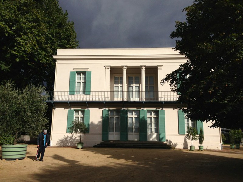 Der letzte Ort der Besichtigung war am Donnerstagnachmittag der Park von Schloss Charlottenburg, wieder mit Gebäuden von Schinkel. Neben dem üppig barocken Riesenschloss sieht sein Pavillon klein und bescheiden aus; und in der klassizistischen Schlichtheit erkennt man schon die einfachen und strengen Formen der modernen Bauhaus-Architektur.