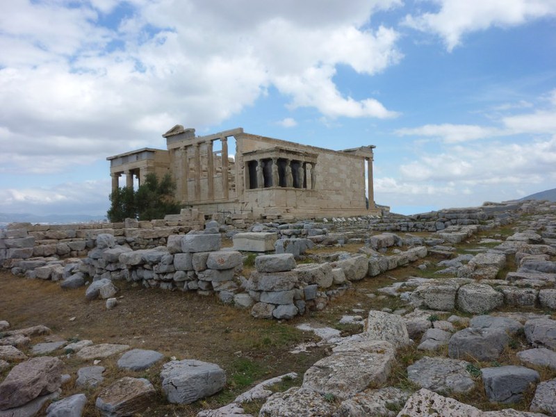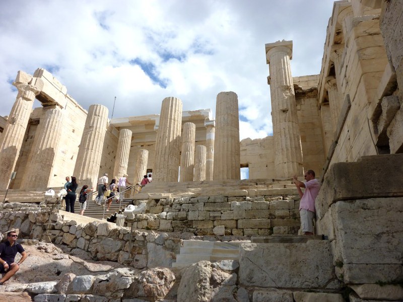 “Europa ist auf drei Hügeln gebaut. Golgota steht für Frieden, die Akroplis für Demokratie und das Kapitol in Rom für die Rechtsstaatlichkeit.” Mit diesem Zitat von Theodor Heuss führte Jakob uns in die Geschichte der Akropolis ein, die wir dann auf dem antiken Panathenäenweg – der Strasse für die alle vier Jahre stattfindende Festprozession hinauf zum Parthenon – erklommen. Dabei machten wir in den imposanten Propyläen Halt; ohne sich von dem gewaltigen Touristenstrom neben uns beirren zu lassen, berichtete uns Alexander interessante Einzelheiten über die Errichtung des aufwendigen Baus (Kosten: ca. 2012 Talente Silber, was dem Preis von über 40'000 Sklaven entsprach). Wir hatten auch das Glück, zu den ersten Besuchern der Akropolis zu gehören, die den zierlichen Nike-Tempel nach der Restaurierung ohne Gerüst zu sehen bekamen.