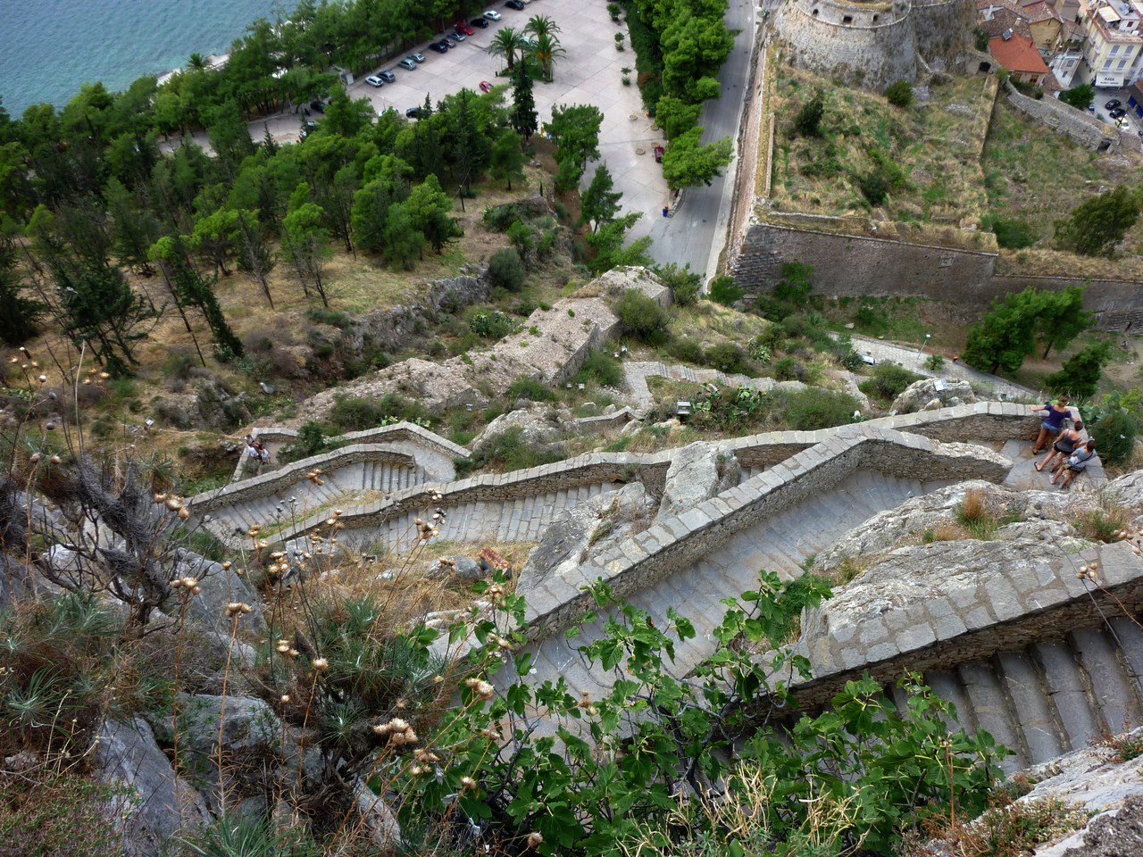 Am Montag sind auch in Griechenland viele Museen und archäologischen Stätten geschlossen, und so zogen wir aufgrund dieser Not von den 12 Tagen unseres Unternehmens einen ganzen freien Tag ein. Zur Erholung wurde er mit der Besteigung der spätmittelalterlichen Festungsanlage auf dem Palamidi, ausgedehnterem Shoppen oder längerem, stets beliebtem Baden am nahen Strand genutzt.