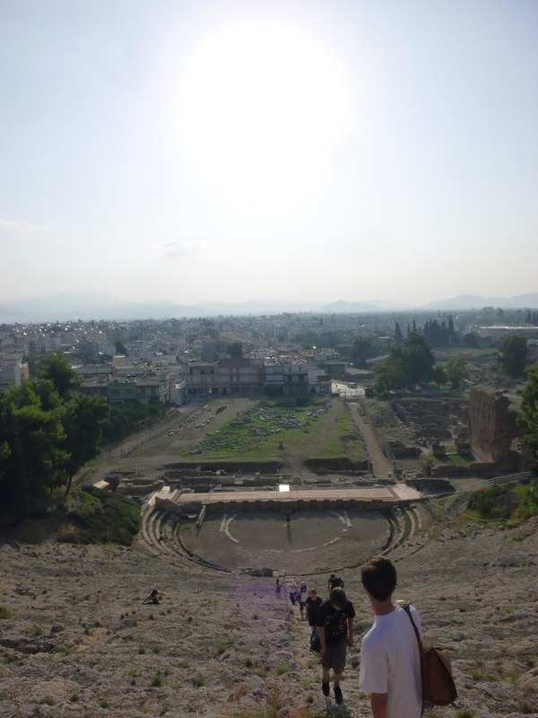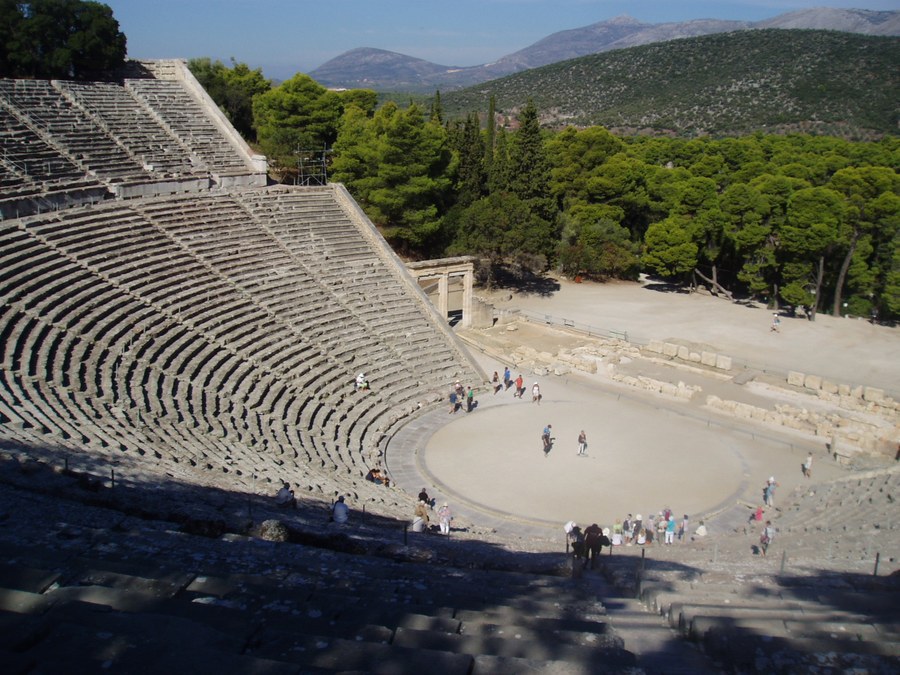 Nauplia bot uns einen idealen Ausgangpunkt für mehrere Tagesausflüge. Der erste führte uns zunächst nach Epidauros. Von der phantastischen Akustik im dortigen Theater hatten die Schülerinnen und Schüler schon vor der Reise gehört; sie liessen es sich nicht entgehen, den Effekt auf ihre Weise zu erproben, was natürlich für Heiterkeit sorgte. – Cazim führte uns in einem spannenden Referat in die Entstehungsgeschichte des griechischen Dramas ein; in Athen, der eigentlichen Geburtsstätte dieser Gattung, wäre dafür nicht genug Zeit gewesen, und das Theater in Epidauros bot in jedem Fall eine eindrückliche Kulisse für seine Ausführungen.