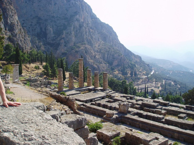 Am nächsten Morgen besichtigten wir unter kundiger Führung von Anja und Anne-Cathérine die Ausgrabungen und das Museum von Delphi. Wir erfuhren viel über die Bedeutung des Orakels, dem im alten Griechenland eine Unzahl wichtiger Entscheidungen überlassen wurde – oft, aber nicht immer zum Segen der Fragenden; denn wer einen doppeldeutigen Spruch der Orakelpriesterin Pythia falsch interpretierte, hatte das Nachsehen. Über die Frage, worin die Inspirationsquelle der Pythia zu suchen ist, hat man viel spekuliert: Liess sie sich durch Dämpfe aus einer Erdspalte, über der sie auf einem Dreifuss sass, in Trance versetzen? Möglich, aber von der Erdspalte ist heute nichts mehr zu sehen. Mitunter waren ihre Sprüche aber wohl auch durch eine ganz handfeste Quelle beeinflusst: Schon Herodot berichtet, dass sich die Pythia dann und wann bestechen liess.