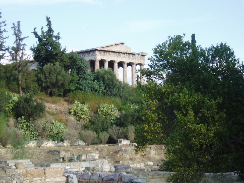 Die Besichtigung von Agora und Akropolis – Zentrum des antiken Athen – war zweifellos einer der Höhepunkte unserer Reise. Auf der Agora zeigte uns Sascha u.a. das Hephaisteion, den besterhaltenen Tempel im griechischen Mutterland, und erläuterte uns die mythischen Szenen, die am Fries und auf den Metopen zu sehen sind. Im Agora-Museum erfuhren wir von Farah Interessantes über die athenische Demokratie und ihr aufwendiges Gerichtswesen: um Bestechung auszuschliessen, wurden mit Hilfe einer raffiniert konstruierten Losmaschine jeweils unmittelbar vor Verhandlungsbeginn Richterkollegien von mindestens 200 athenischen Bürgern zusammengestellt. Wer angeklagt war, musste sich persönlich vor dem Gre¬mium verteidigen, wobei die streng begrenzte Redezeit mit einer Wasseruhr gemessen wurde.