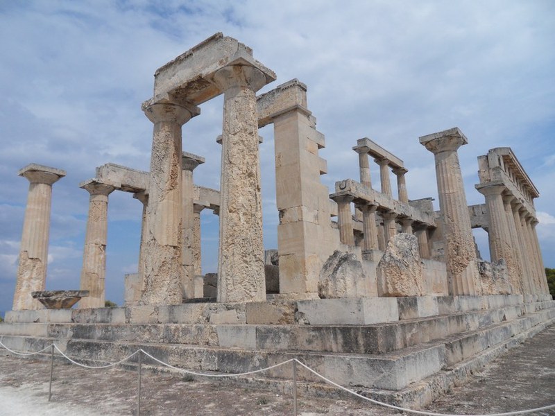Der drittletzte Tag unserer Reise galt einem Ausflug zum Aphaia-Tempel auf der Insel Aegina. Am Hafen von Athen, in Piräus, bestiegen wir die Fähre und erlebten so das offene Meer vom Schiff aus. Nach einer kurzen Mittagspause brachte uns der öffentliche Bus auf Strassen durch Pistazienbaum-Anlagen zum Heiligtum, das architektonisch mit seinen 23 erhaltenen Säulen (die Cella mit zwei Säulenreihen) und kulturgeschichtlich v.a. mit seinen Giebelskulpturen besticht. Viele von ihnen sind heute in der Münchner Glyptothek ausgestellt (während der Ausstellung ‚Bunte Götter’ auch in Basel) und stellen ein schlagendes Beispiel für die in der Wissenschaft zeitweise angezweifelte Polychromie (Mehrfarbigkeit) griechischer Tempel dar. Marie hat davon und von der Rivalität Aeginas mit Athen ausführlich berichtet, so dass klar wurde, dass Aegina seine eigene Bedeutung auch mit dem prachtvollen Tempel unterstreichen wollte.
