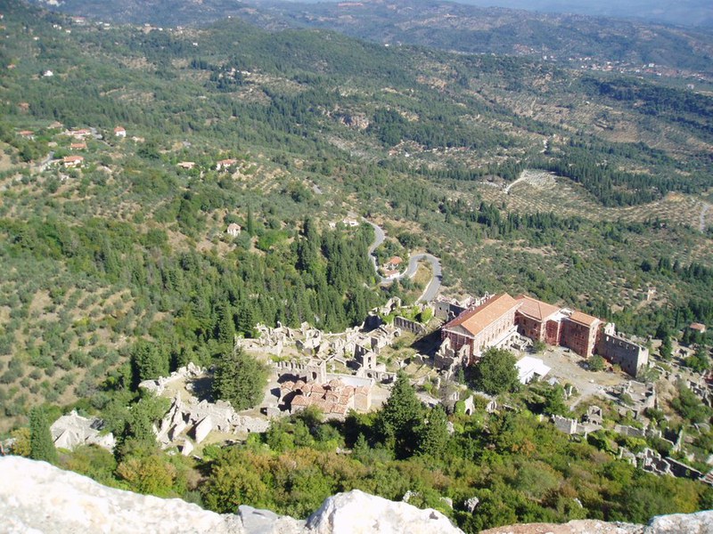 Der vierte Reisetag führte uns in die byzantinische Ruinenstadt Mistra. Trotz drückender Hitze meisterte die Gruppe den Aufstieg zur fränkischen Festung gut, von wo man eine wunderbare Aussicht über das Taygetos-Gebirge geniesst. Der Despotenpalast (13./14. Jh.) war zu unserer leisen Enttäuschung nicht zugänglich, doch es gab in Mistra auch so noch mehr als genug zu sehen. Eliah und Theodor zeigten uns in geschickter Auswahl die schönsten Fresken aus den Kirchen und Klöstern, die in dieser Stadt dicht an dicht zu finden sind.