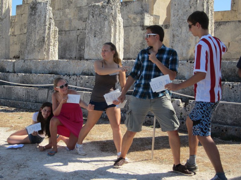 Früh morgens besuchten wir das Hauptheiligtum des Asklepios in Epidauros. Hier faszinierte uns vor allem das riesige Theater, und wir verbrachten einige Zeit damit, seine spezielle Eigenschaft auszuprobieren, auch die leisesten Geräusche bis in die letzte Reihe zu tragen. Eine Gruppe von Schülern stellte sich auf der Bühne auf und sang “Halleluja”, ein anderer Schüler zitierte das Prooimion der Odyssee.
