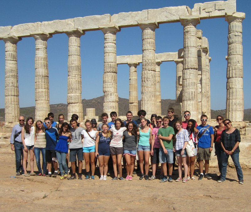 Frühmorgens nahmen wir das Schiff im Hafen von Piräus zur kleinen Insel Ägina. Dort besichtigten wir den Aphaia-Tempel. Grossartig war die Idee der Referentinnen, die Giebelfiguren nachstellen zu lassen (siehe auch das Foto oben) – die Originale befinden sich in der Münchner Glyptothek. Anschliessend machten wir eine kleine Wanderung zum Meer hinunter, wo wir in einem kleinen Dorf zu Mittag assen. Wir nahmen den Bus und gelangten somit wieder in den Ortskern. Dort verbrachten wir den Rest des Nachmittags am Meer. Zurück im Hotel konnten wir dann unser Abendessen auf der Dachterrasse geniessen, auf der man eine wunderschönen Aussicht auf die beleuchtete Akropolis und ganz Athen hatte.
