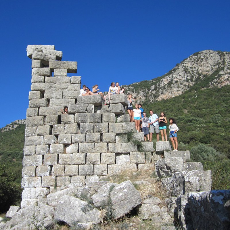 Auf dem Weg nach Kalamata besuchten wir noch das Asklepieion in Messene. Zwei unserer Mitschüler erzählten uns über den Heilgott Asklepios und seinen Kult, während sie uns über das Gelände des Heiligtums führten, das man als antiken ‘Kurort’ bezeichnen könnte. Sportlich wurde es im Anschluss an die Ausgrabungsbesichtigungen bei einer Kletterpartie über die riesigen Mauern von Messene, die der Stadt einst als Verteidigungswall gegen die Spartaner dienten und uns stark an die Chinesische Mauer erinnerten.