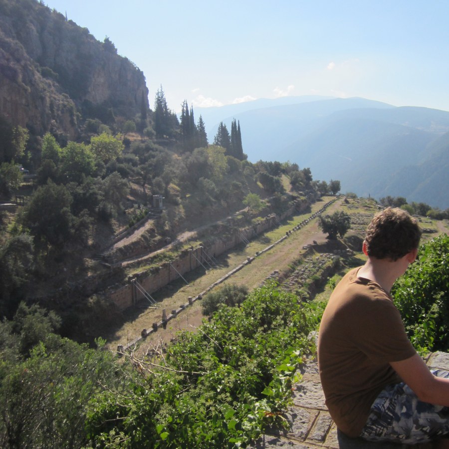 Nachdem alle früh aufgestanden waren und gefrühstückt hatten, machten wir uns auf den Weg zu den Ausgrabungsstätten Delphis. Zwei unserer Mitschüler führten uns während ihres vierstündigen Vortrages über das gesamte Gelände Delphis. Das bedeutendste Orakel der Antike liegt inmitten einer beeindruckenden Felsenlandschaft – es ist nicht verwunderlich, dass hier ein Heiligtum entstanden ist. Zuerst besuchten wir das Athena-Pronaia-Heiligtum, dann den Apollon-Tempel mit seinen gewaltigen Säulen und schliesslich das Stadion. Anschliessend besichtigten wir noch das Museum, in dem neben unzähligen Votivgaben aus allen Epochen auch der berühmte Wagenlenker und der Hermes des Praxiteles zu sehen sind.