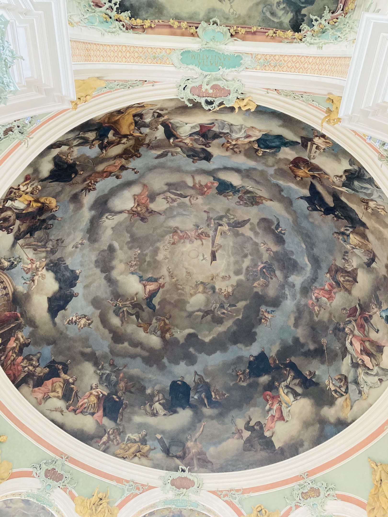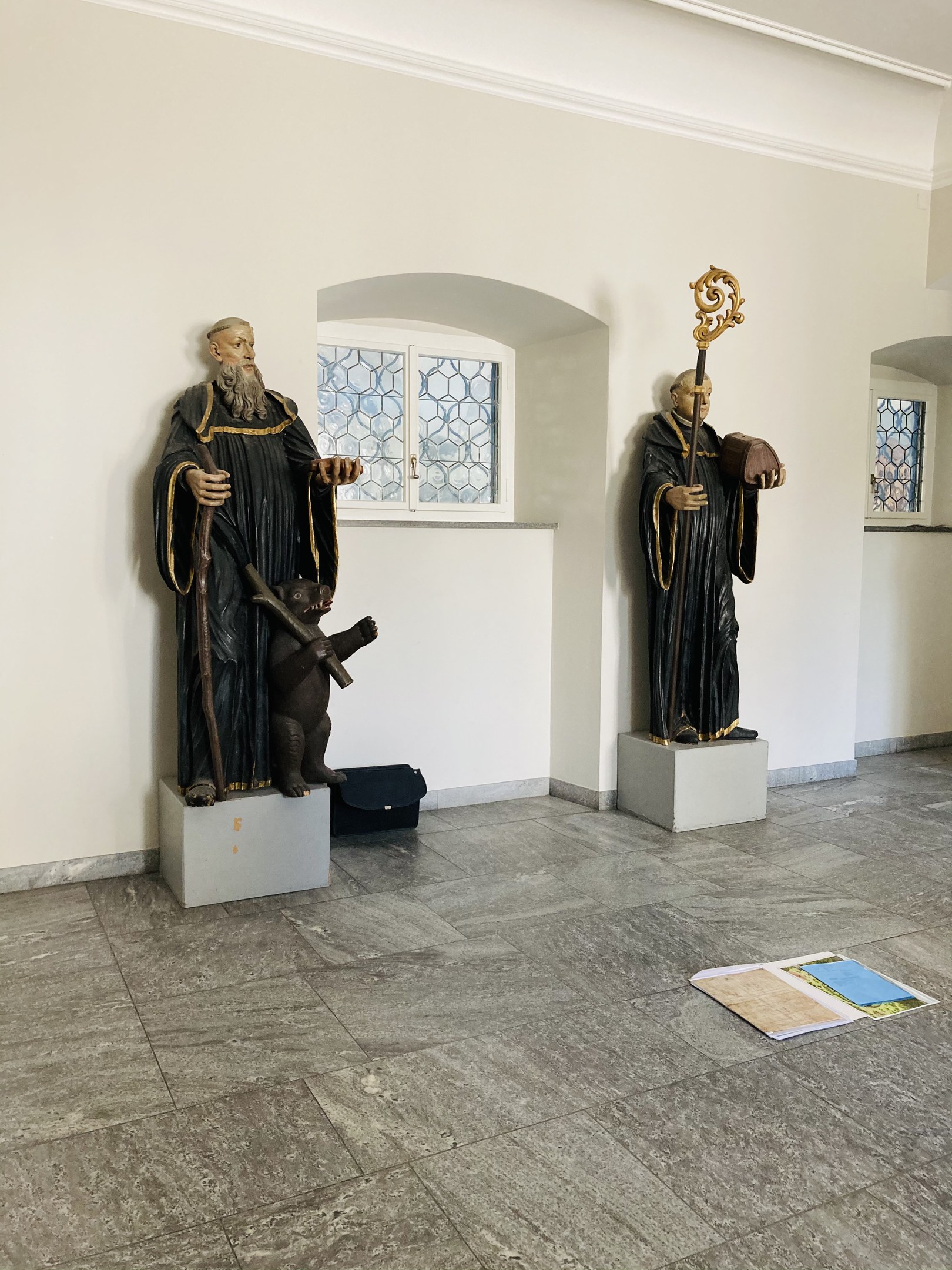 Unser erster Tag startete mit einer Zugreise nach St. Gallen. Wir verbrachten unsere Zeit u. a. mit UNO spielen. In St. Gallen angekommen, gingen wir zum Stiftsbezirk, welcher aus dem Stiftsarchiv, der Kathedrale und der Stiftsbibliothek besteht. Wir erhielten eine Führung von Herrn Haselbach, einem ehemaligen Lateinlehrer. Er erzählte uns von Gallus, dem irischen Wandermönch, welcher in St. Gallen 612 n. Chr. eine Einsiedelei errichtete. Nach ihm ist St. Gallen benannt. Im Archiv sahen wir verschiedene Schriften und Bücher. Am Ende der Führung konnten wir die Bibliothek bestaunen, die uns sehr beeindruckte.