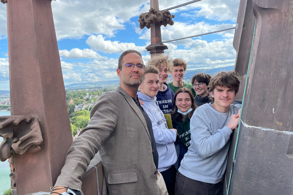 Nach einem sensationellen neapolitanischen Mittagessen in der Pizzeria DIO/MIO ging es hoch hinaus: wir bestiegen den Martinsturm des Basler Münsters. Danach suchten und betrachteten wir zur grossen Entzückung von Frau Bloch die in die Säulen gemeisselten Abbildungen von Pyramus und Thisbe aus Ovids Metamorphosen im Hochchor des Münsters. Anschliessend hatte Yannick (3A) für uns eine Multimediavorführung über die Krypta unter der Vierung organisiert. Danach durften wir die äussere Krypta besichtigen, welche wir durch eine grosse Tür unter der Pfalz betraten. Man fand dort neben Knochen und Steinen auch römische Mauerreste, die bis ins 3. Jahrhundert nach Christus zurückdatiert werden. Schliesslich beendeten wir unseren Studientag mit einem Rundgang durch den Kreuzgang, wo Yannick (3A) teils lustige und interessante Anekdoten und Fakten zu den Grabtafeln und Kunstwerken erzählte.