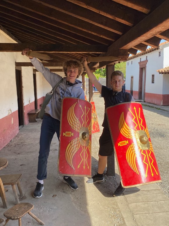 Den letzten Tag unserer Studienreise haben wir in Augusta Raurica, einer ehemals römischen Kolonie, verbracht. Unser Rundgang startete mit der Besichtigung einer nach antiken Vorstellungen nachgebauten Villa, dem Römerhaus. Durch die Führung von Frau Bloch und unserem im Lateinunterricht angeeigneten Vorwissen konnten wir uns gut vorstellen, wie die Römer damals gelebt hatten. Nach dem Römerhaus zogen wir weiter ins Museum, um uns die Fundstücke, welche in Augusta Raurica selbst gefunden wurden, anzusehen. Nach dem Museum haben wir im Amphitheater zu Mittag gegessen und dabei die schöne Aussicht auf den kleinen Tempel genossen. Als wir alle gestärkt waren, haben wir uns auf den Weg Richtung Tempel und Curia gemacht. Beide waren sehr interessant wie auch lehrreich. Es ist faszinierend, dass vor über 2000 Jahren Römer genau dort in der Curia über politische und wirtschaftliche Themen diskutiert und entschieden haben. Zum Abschluss des Tages und somit der Studienreise haben wir uns erneut ins Amphitheater begeben, um das römische Ambiente noch ein letztes Mal zu geniessen.