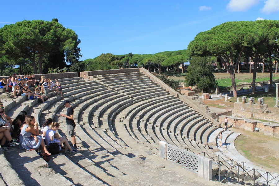 Am Mittwoch stand der Besuch von Ostia Antica auf dem Programm. Bei der Metro-Endstation Pyramide, wo wir auf den Zug zur antiken Hafenstadt Roms umstiegen, erklärte uns Andreas Külling in einem kurzen Input, was es mit der (leider in einem Baugerüst versteckten) Pyramide an dieser Stelle auf sich hatte. Es handelt sich nämlich um das Grabmal des Prätors Gaius Cestius Epulo, welches später in die Stadtmauer des Kaisers Aurelian einbezogen wurde. Nach einer halbstündigen Fahrt kamen wir in der Nähe der Tibermündung an. Kurz nach dem Eingang in die frühere Hafenanlage, die heute keinen Meeranstoss mehr besitzt, erklärten uns Emely und Manon in ihrem Referat das wichtigste zur Gründung und Entwicklung Ostia Anticas. Dabei führten sie uns zu den wichtigsten Bauten dieser nebst Pompeji und Herkulaneum besterhaltenen römischen Siedlung. Dazu gehören Thermen, Tempel, Theater und das Forum mit Kapitol und Basilika. Im Theater stiessen wir auf anderen Schulklassen und Reisegruppen. In der Folge entwickelte sich ein kleiner Wettkampf verschiedener Aufführungen, den Lea und Tim in einer an Artistik reichen Darbietung klar für sich entscheiden konnten. Im anschliessenden Referat von Henry und Hugo erfuhren wir dann genaueres zur Funktionsweise der Hafenanlage und zu dessen Einbindung in den Handel des römischen Reiches. So wurden Waren für die Stadt Rom an dieser Stätte verladen und mittels von Vieh gezogenen kleineren Boten Tiberaufwärts verfrachtet. Nach der Rückfahrt konnten die Schülerinnen und Schüler den Rest des Tages frei gestalten.