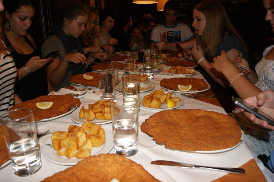 Wir waren von Sonntagmittag bis Freitagabend unterwegs. Die Reise nach Wien war im Allgemeinen sehr toll. Wir haben viel erlebt, und auch die Stimmung in der Klasse war gut. Bei den Nachtessen quetschten wir uns alle an einen Tisch. Die Nachtessen haben jeweils kleine Gruppen für die ganze Klasse reserviert. Wir waren immer in anderen Restaurants und assen riesige Portionen typisches Wiener Essen wie Schnitzel (im angeblich stadtbesten Schnitzelkeller), Palatschinken, süsse Omeletten und Eiernockerl. Wir hatten es lustig und blieben lange sitzen. Auch im Ausgang blieben wir oft zusammen. Die Reise wird uns allen noch lange in Erinnerung bleiben!